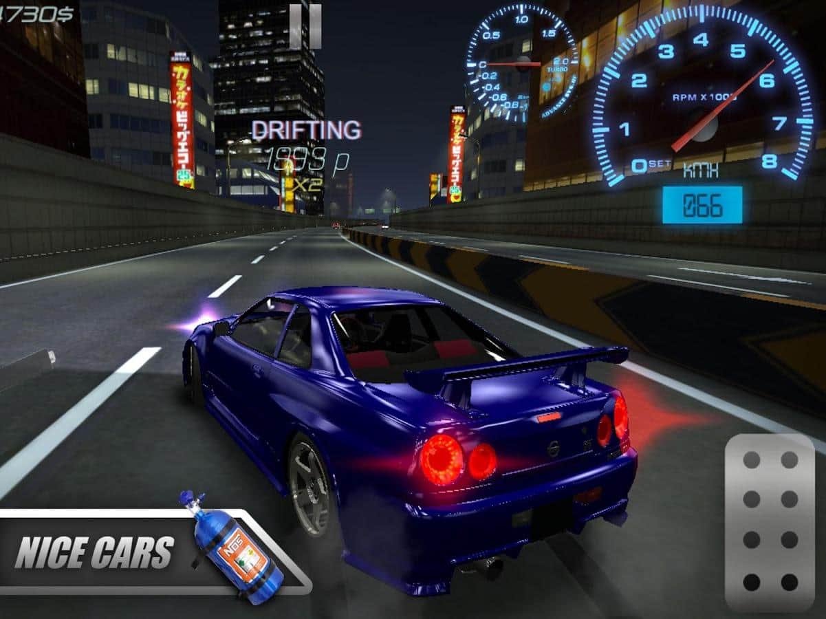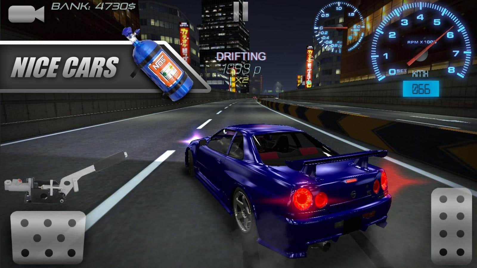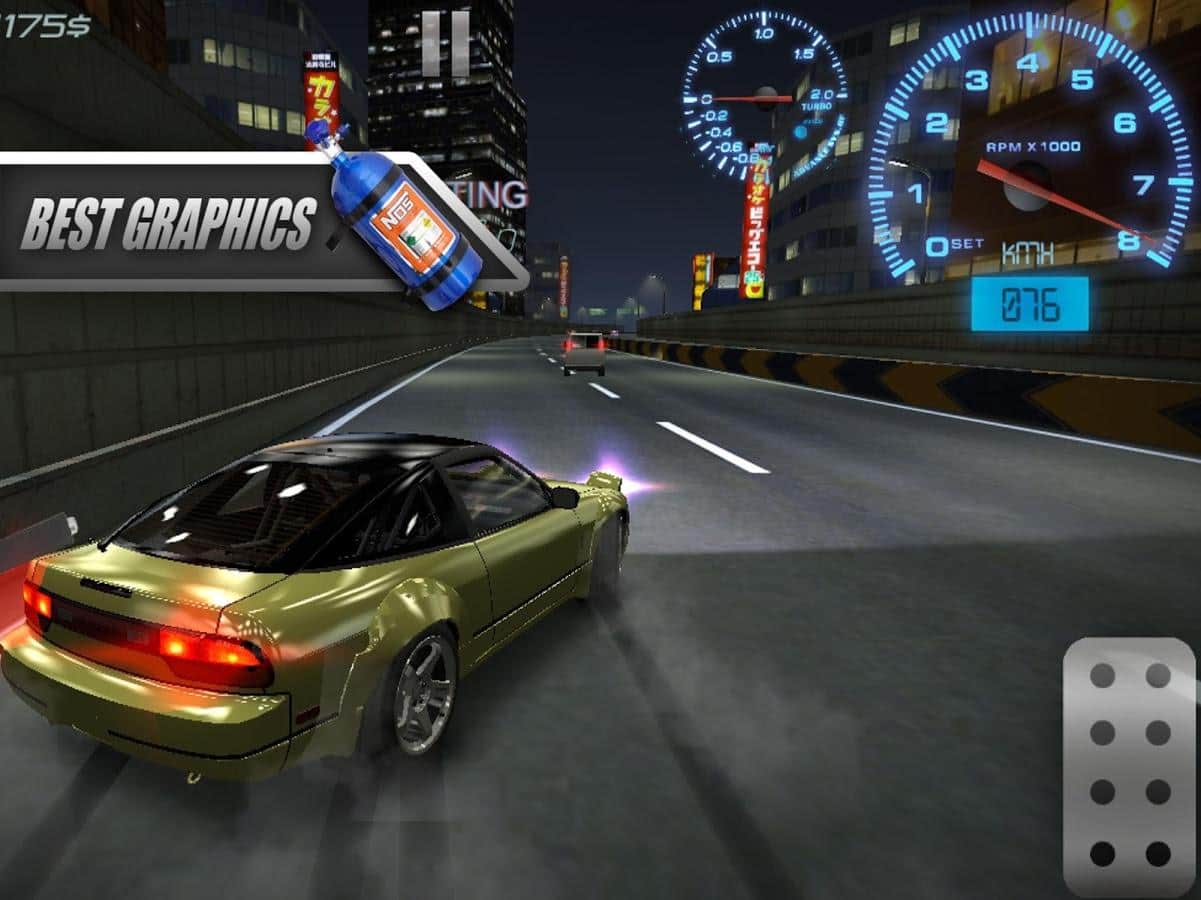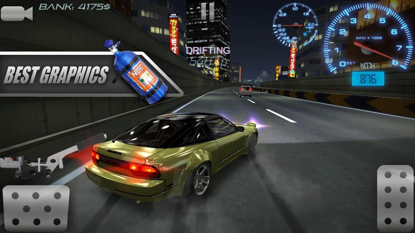 Drift Streets Japón - Los amantes de los drifters se unen a la emocionante carrera por la ciudad nocturna de Japón. Este juego es muy simple, pero no solo tiene bonitos gráficos, sino también un sistema de control simple; con un par de pedales puedes acelerar o frenar, y al inclinar el teléfono inteligente puedes girar. Además, hay una física muy detallada, por lo que la conducción será muy interesante.