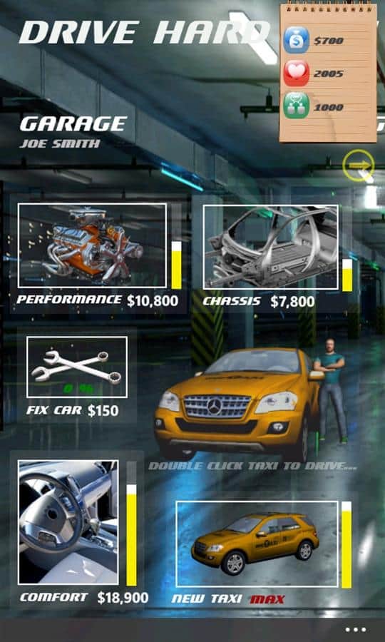 Drive Hard Taxi es un gran juego para Windows Phone donde juegas como un taxista, compras un coche (incluso hay uno por un centavo), lo mejoras y recorres la ciudad en busca de pedidos. Lleva a los clientes que lo necesiten.