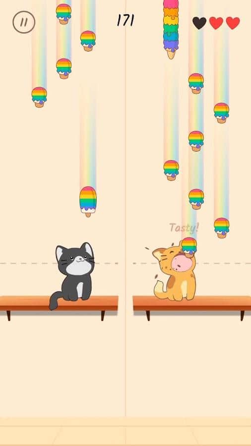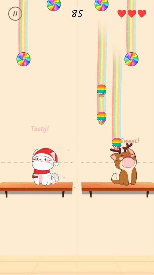 Dueto de Gatos: Música Popcat Linda - Disfruta de la compañía de hermosos gatos y sumérgete en el mundo de la música o el entretenimiento, ¡interpretando hermosas melodías junto a tus amigos peludos! Supera obstáculos musicales, realiza precisas capturas de deliciosas golosinas para lograr el sonido armónico perfecto y atrapa todo el helado que cae desde arriba. Cada nivel completado con éxito te acercará a la fama musical y a emocionantes nuevas melodías. Diviértete con ellos, decora la Torre de Gatos y no olvides alimentarlos con comida para gatos a tiempo.