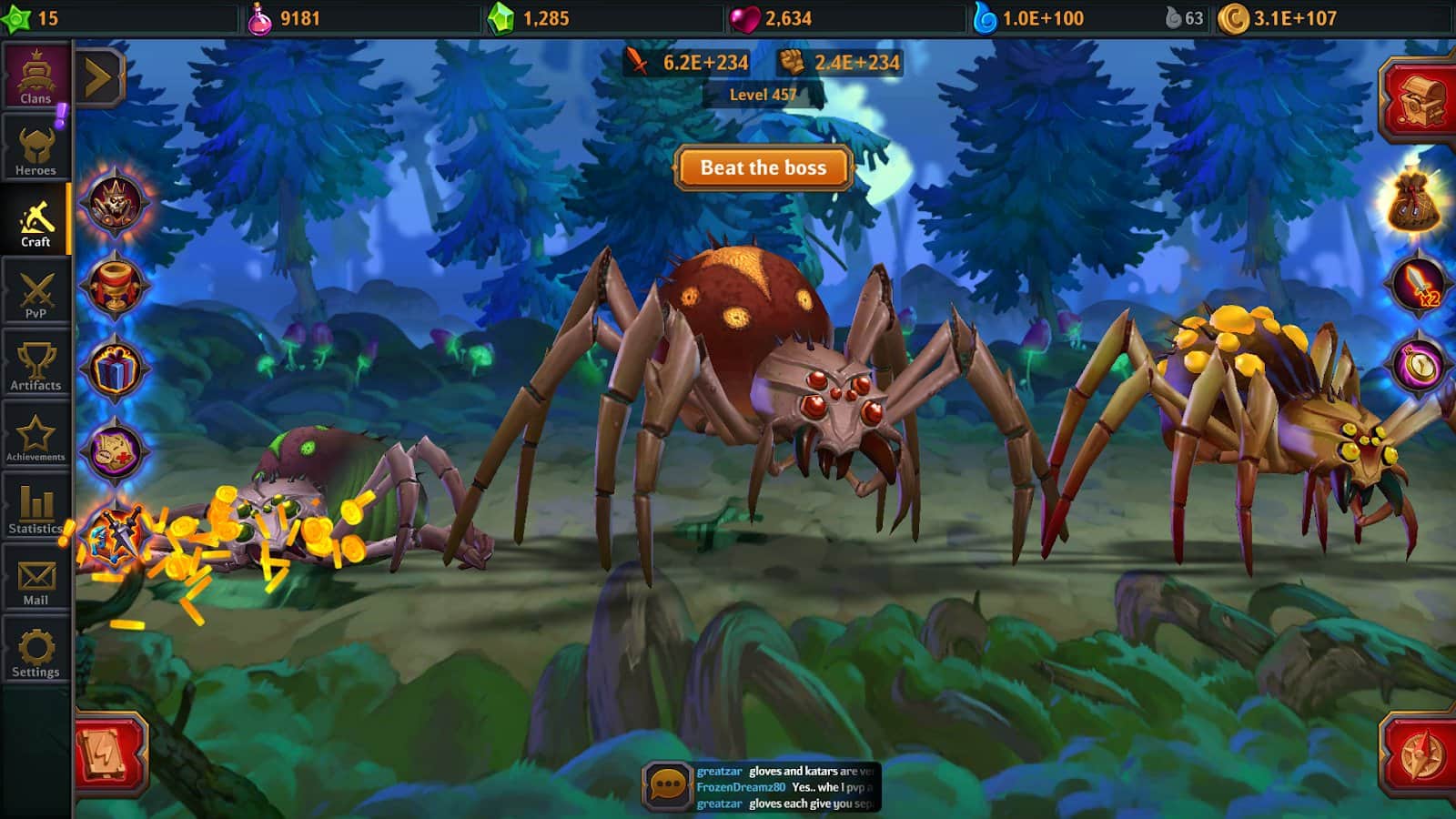 Dungeon Crusher: ninja – un juego donde participas en un emocionante viaje. Toma el control de un valiente héroe y embarca en una aventura para explorar la misteriosa cueva. En este juego, tu tarea principal será hacer clic en la pantalla de tu teléfono o tableta en el momento adecuado y forzar al héroe a luchar. Crea tu equipo imbatible de héroes y lucha contra jugadores reales en batallas pvp. En el juego encontrarás más de 100 héroes únicos, 9 habilidades, 8 ubicaciones escénicas y más de 100 niveles.