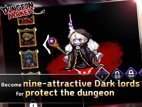 Dungeon Maker: Señor Oscuro – juego por turnos para IOS donde defenderás tu mazmorras contra enemigos. En este juego, un valiente grupo de héroes quiere entrar en tu mazmorras y apoderarse de ella, tu tarea es no permitir que lo hagan. Coloca trampas perimetrales, sistemas de defensa y utiliza las habilidades de los señores oscuros. Establece el camino de los monstruos enemigos que te protegerán y soporta el asalto de los enemigos. Los siete señores oscuros, cada uno con sus propias habilidades únicas. Recoge después de una batalla exitosa, varios relicarios y desbloquea nuevos monstruos y trampas.