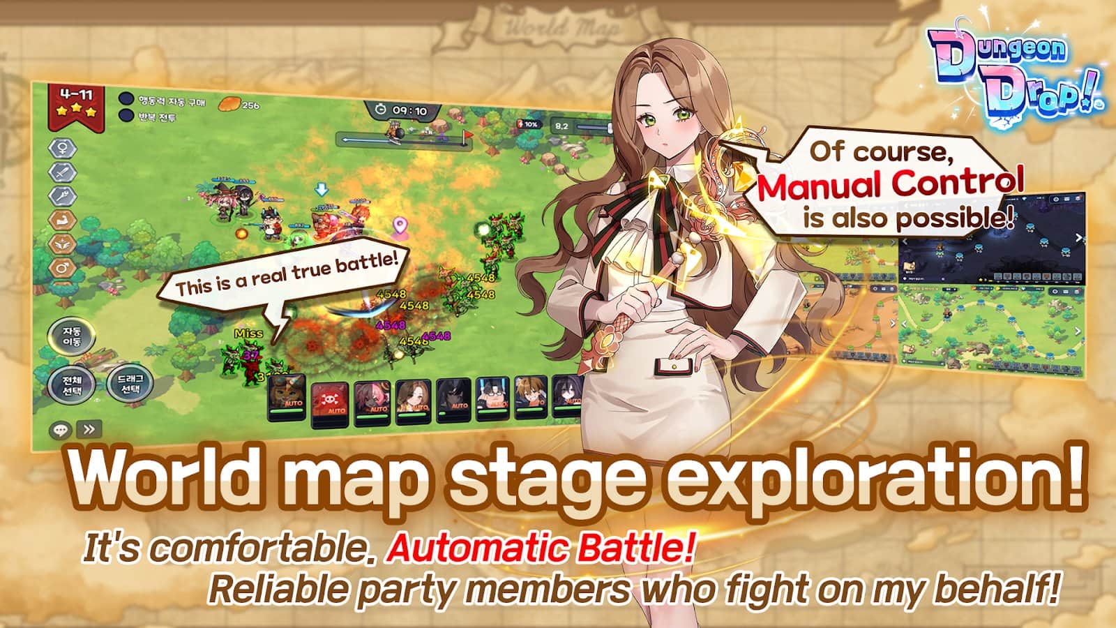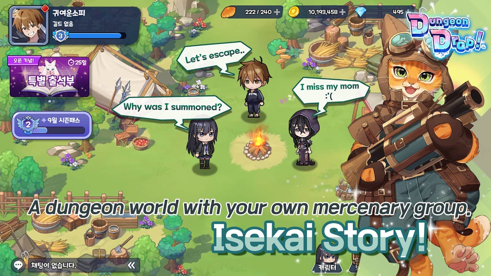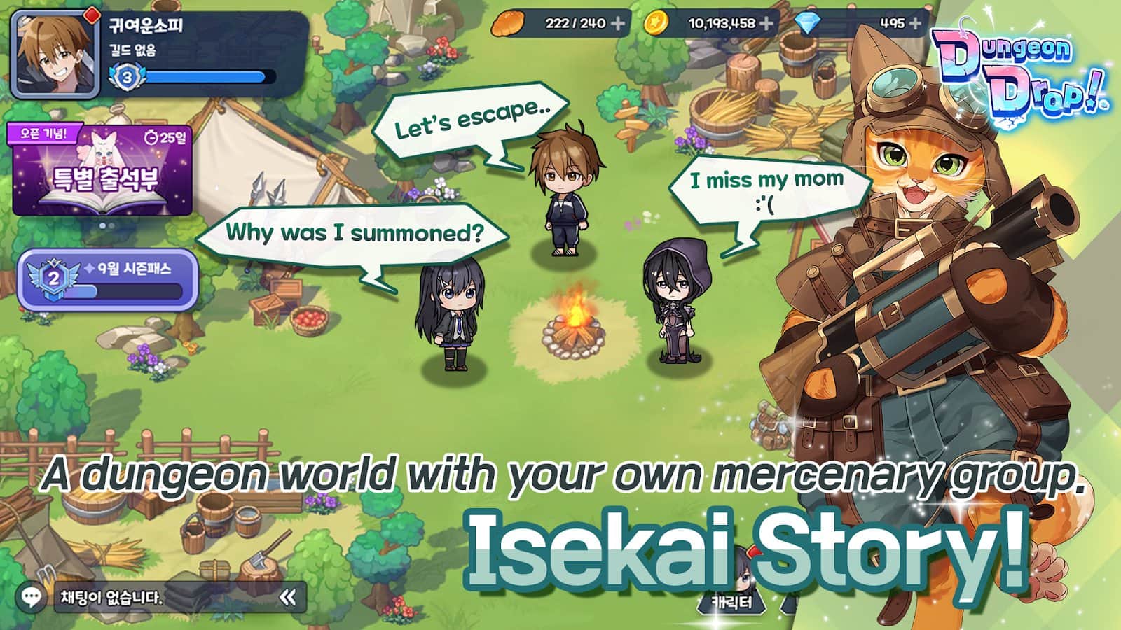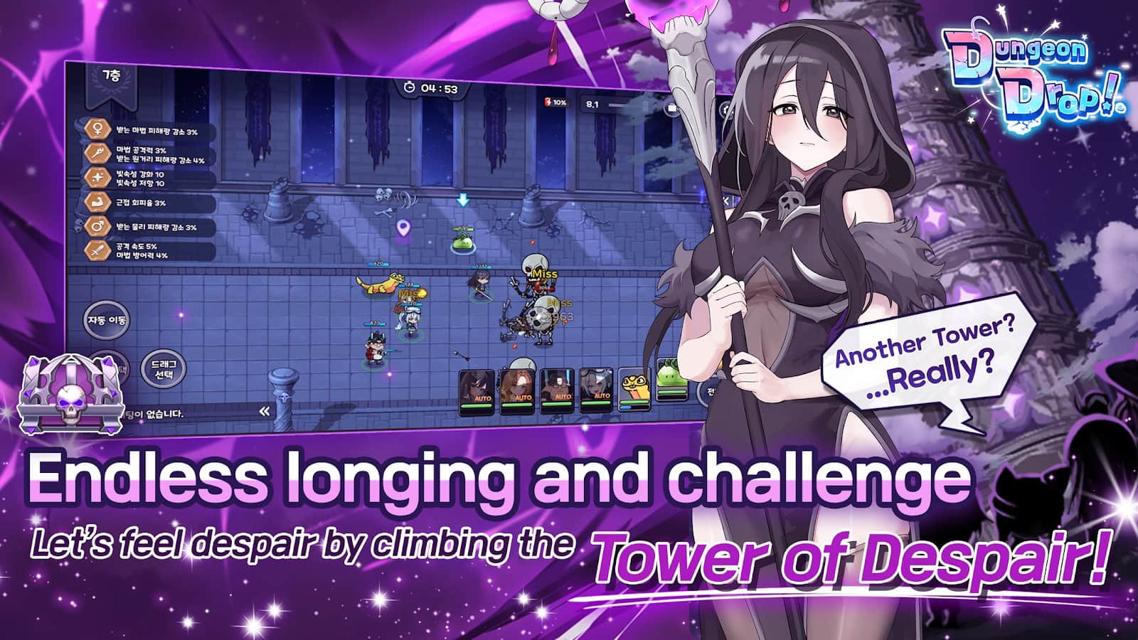 ¡DungeonDrop! - te encuentras en un mundo misterioso de mazmorras, lleno de descubrimientos inesperados y asombrosos desafíos. Te espera un viaje inusual, donde encontrarás personajes carismáticos y adorables monstruos listos para unirse a tu aventura. Crea una combinación única de armas y habilidades, mejora los objetos y personaliza a los héroes para adaptarlos a tu estilo de juego. Explora un vasto mundo, conquista mazmorras con jefes, enfréntate a la Torre de la Desesperación y ¡desafíate a ti mismo! ¡Delante de ti hay batallas de gremios, incursiones y pruebas increíbles!