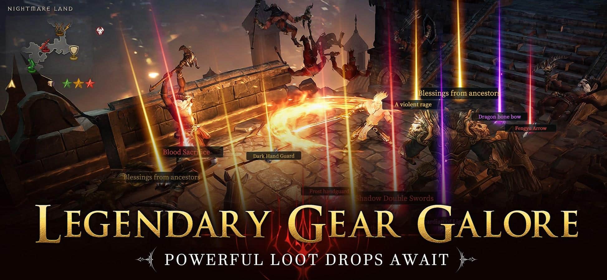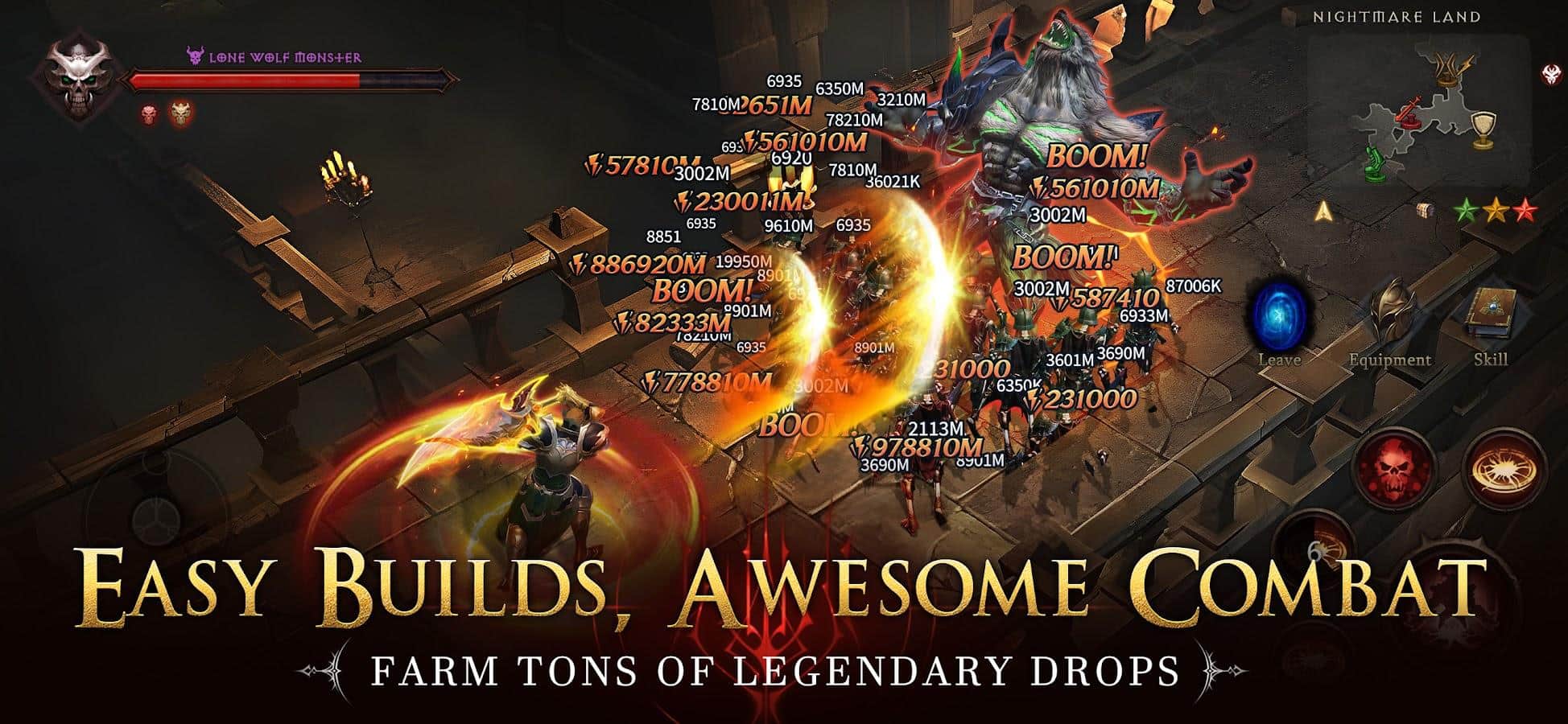 Mazmorras y Eldritch - "Cuando cae la oscuridad, despiertan pesadillas aterradoras." Cuando fuerzas siniestras amenazan al mundo, solo tú puedes derrotar a jefes colosales y proteger el reino. Explora tierras oscuras, vence a los enemigos y revive la esperanza como el último bastión de luz. Experimenta mecánicas de botín dinámicas y combos continuos a través de un sistema de doble joystick que permite golpes poderosos y ininterrumpidos. Desarrolla tu personaje desbloqueando habilidades únicas en el árbol de habilidades. El mundo está sumido en el caos, pero tu lucha contra el mal nunca termina. ¡Asciende a la cima de la gloria para convertirte en el mayor aventurero de tu tiempo!