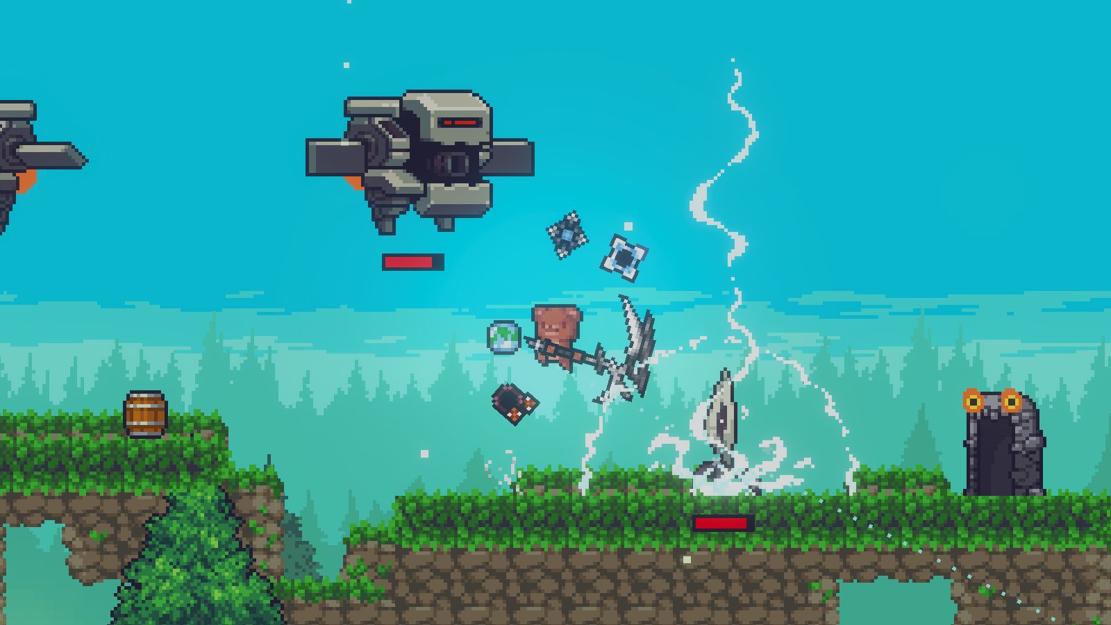 Dungreed - Después de la repentina caída de una enorme ciudad en una oscura mazmorras, que nadie esperaba en absoluto, alguien simplemente tiene que asumir la responsabilidad y salvar a los pacíficos habitantes que están en algún lugar abajo. Has asumido este papel, por lo que tendrás que profundizar independientemente en la tierra, encontrar el camino correcto, enfrentarte a todos los enemigos disponibles en tu camino y liberar a las personas atrapadas. Al principio, solo tendrás una espada oxidada, pero con el tiempo, los rifles de francotirador estarán disponibles para ti.