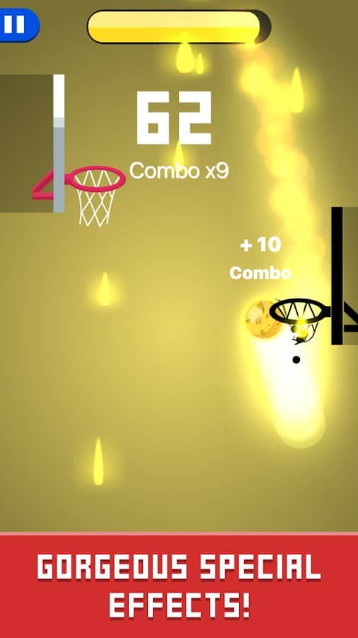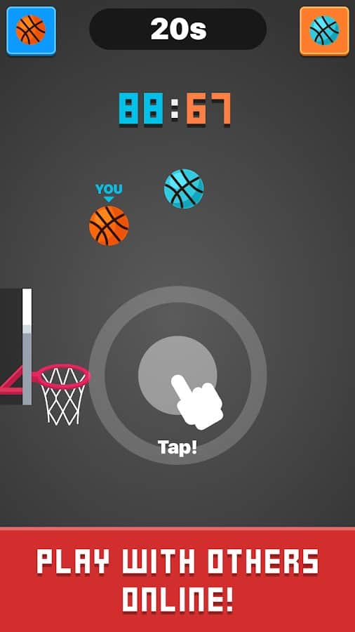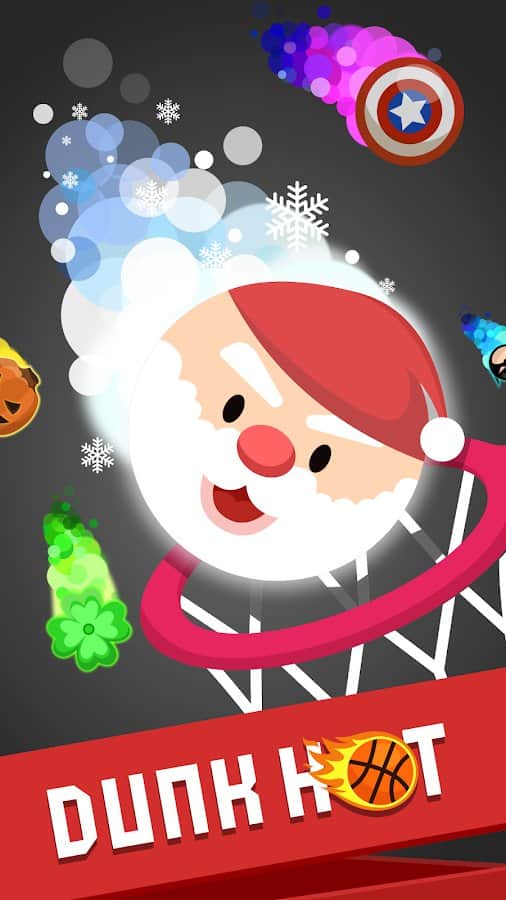 Dunk Hot es un emocionante juego de deportes en Android donde jugarás al baloncesto. Toma el control del balón y ordénale que entre en el aro tantas veces como sea posible. Toca la pantalla de tu teléfono o tableta en el momento adecuado y lanza el balón en la canasta, que aparecerá desde diferentes lados. Gana puntos y puntajes y descubre nuevas apariencias para los balones. En el juego encontrarás varios modos de juego, incluyendo el modo clásico con tiempo infinito, el modo de temporada donde necesitas lanzar 30 balones continuamente por un tiempo limitado y la competencia PVP con jugadores reales.