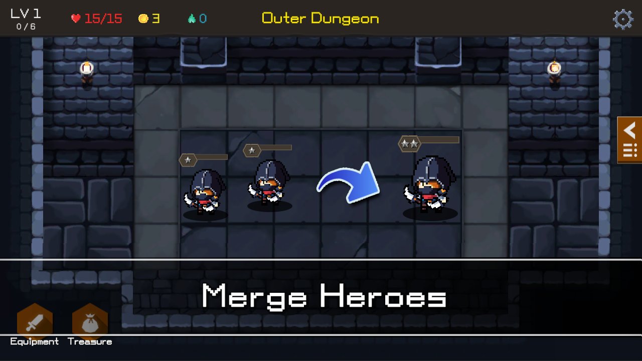 Las armas y armaduras se pueden obtener en combate o comprar al Comerciante, fortaleciendo a tus héroes.