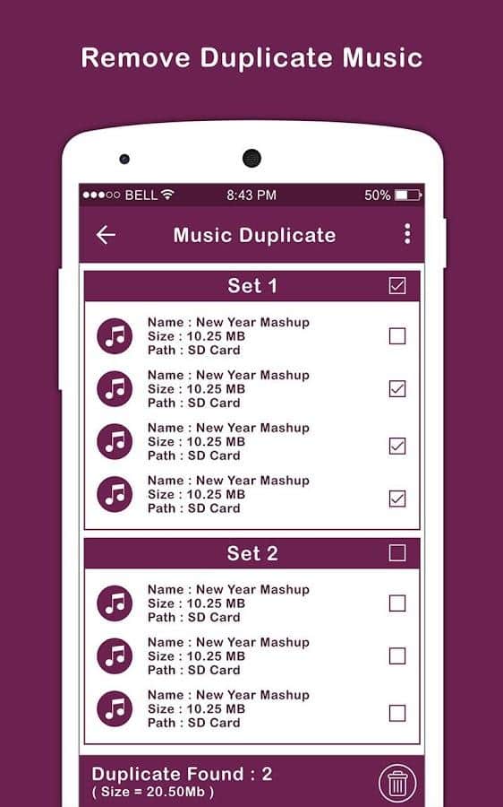 Eliminador de Archivos Duplicados Cleaner es una aplicación que elimina todos los archivos duplicados presentes en la memoria interna y externa de tu teléfono. Es una aplicación poderosa para eliminar archivos duplicados. Usando encontrar archivos duplicados, puedes identificar fácilmente fotos, videos y audios idénticos y similares, y eliminarlos con un solo clic.