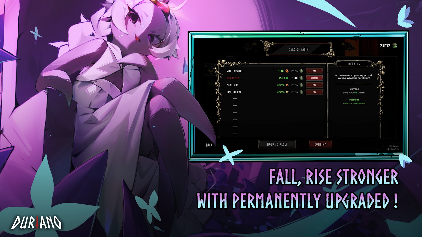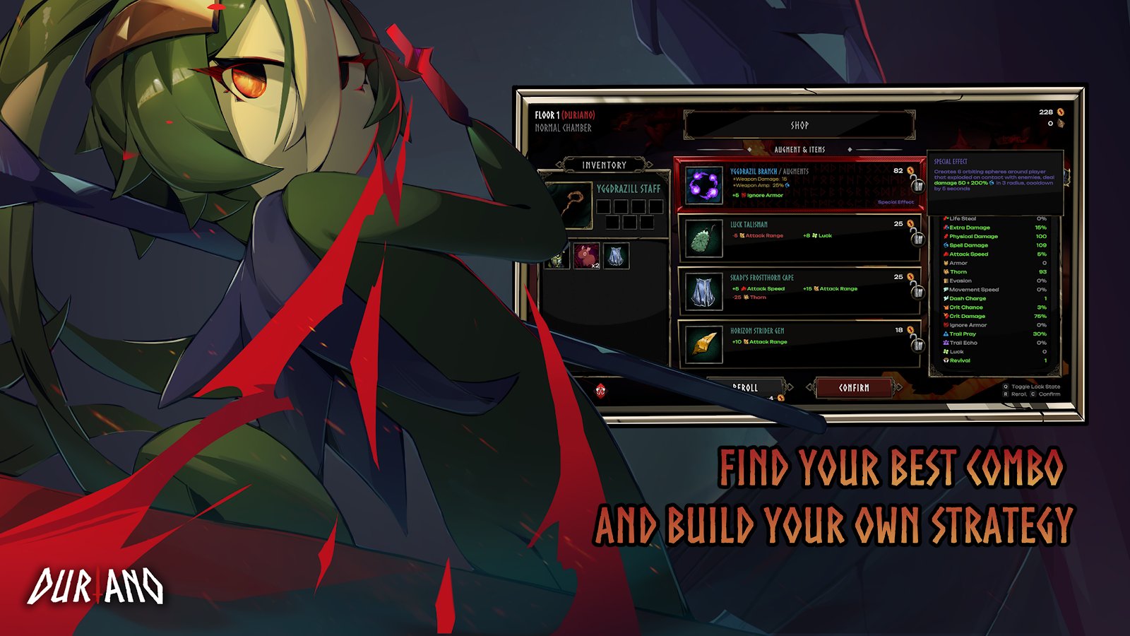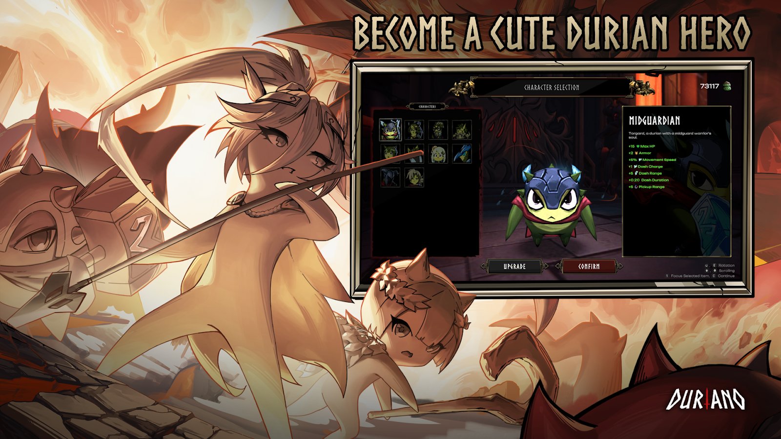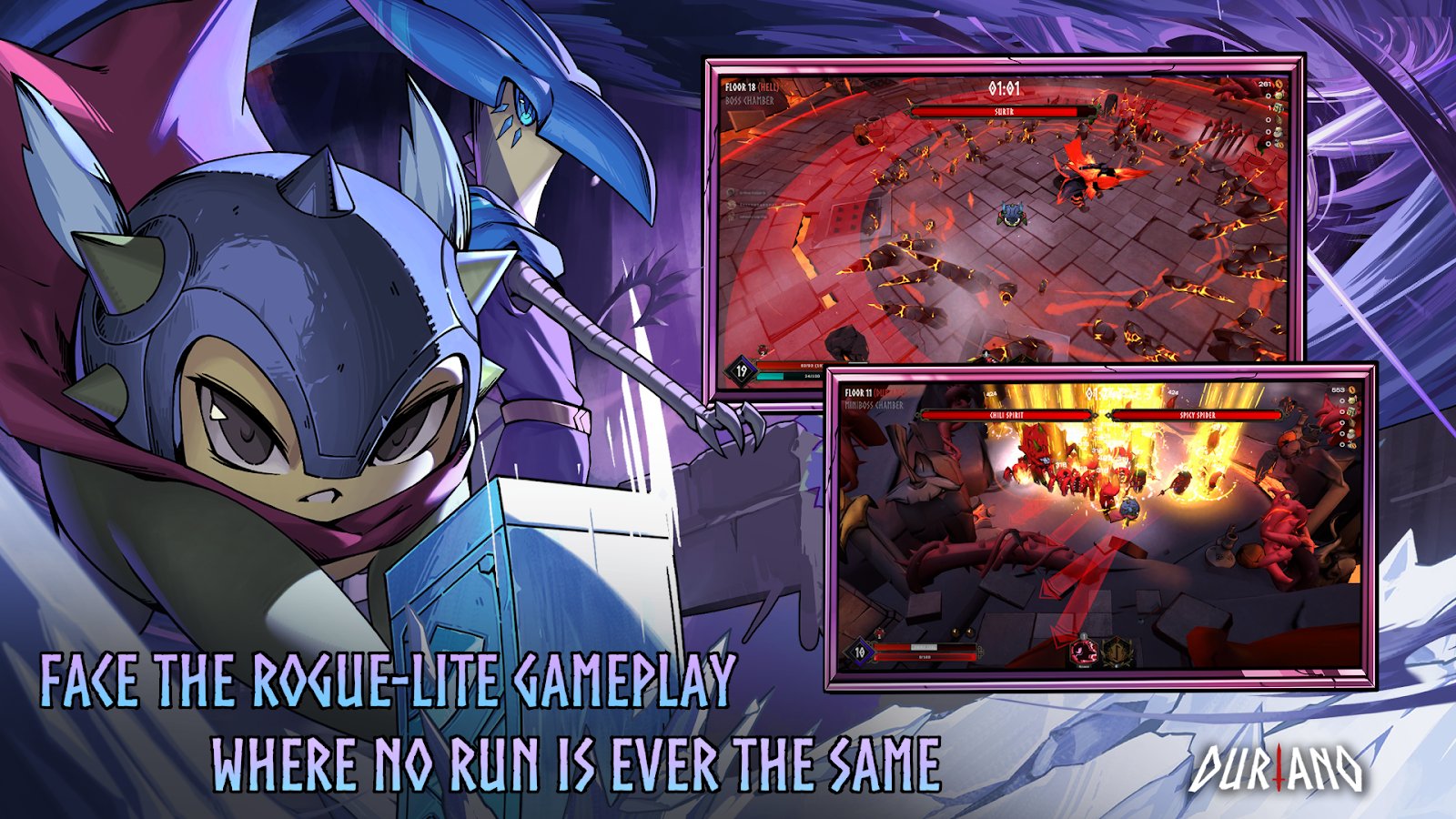 Duriano: Roguelike RPG es un explosivo juego de acción roguelite con vista desde arriba, donde la locura y la mitología se entrelazan en una sola aventura. Controla al héroe duriano y desafía a los dioses, ¡incluyendo al gigante de fuego! Reúne poderosos builds combinando armas, artefactos y "huellas de los dioses" para adaptarte a cada carrera. Mejora en el modo historia, desbloqueando mejoras permanentes, o pon a prueba tus habilidades en el modo de clasificación sin bonificaciones. Combates dinámicos, variabilidad y alta rejugabilidad convierten cada intento en un enfrentamiento único por la victoria.