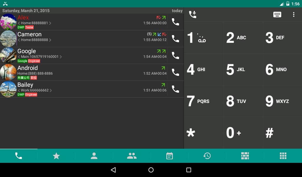 DW Contacts & Phone Pro - Diversifica el menú de contactos con diferentes elementos gráficos. Además, realmente simplificas tu vida si usas el control por gestos. Tan simple que al desplazar hacia un lado abrirás un menú de mensajes para un contacto específico. Todo tipo de estadísticas, filtros y mucho más, se recopilan en una aplicación simple con controles sencillos e interfaz amigable. La lista de todas sus características es muy larga, así que solo descárgala y pruébala tú mismo.