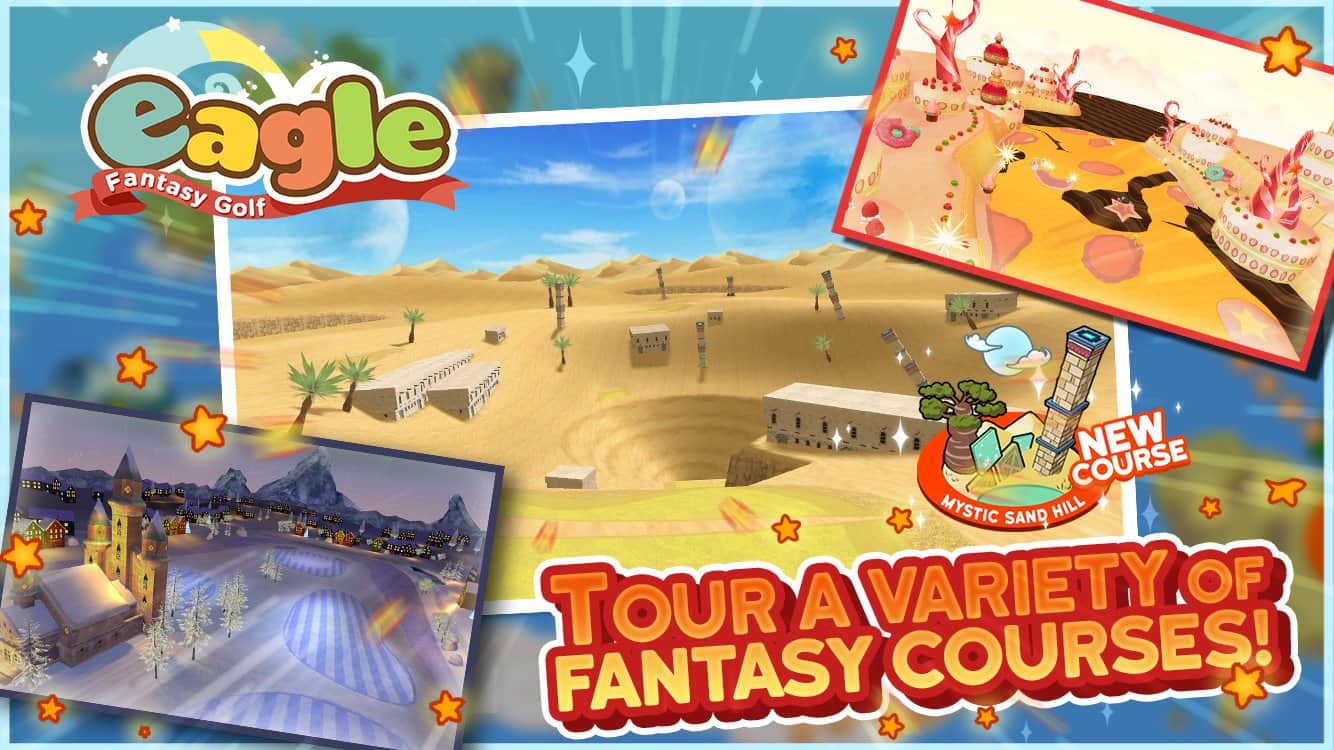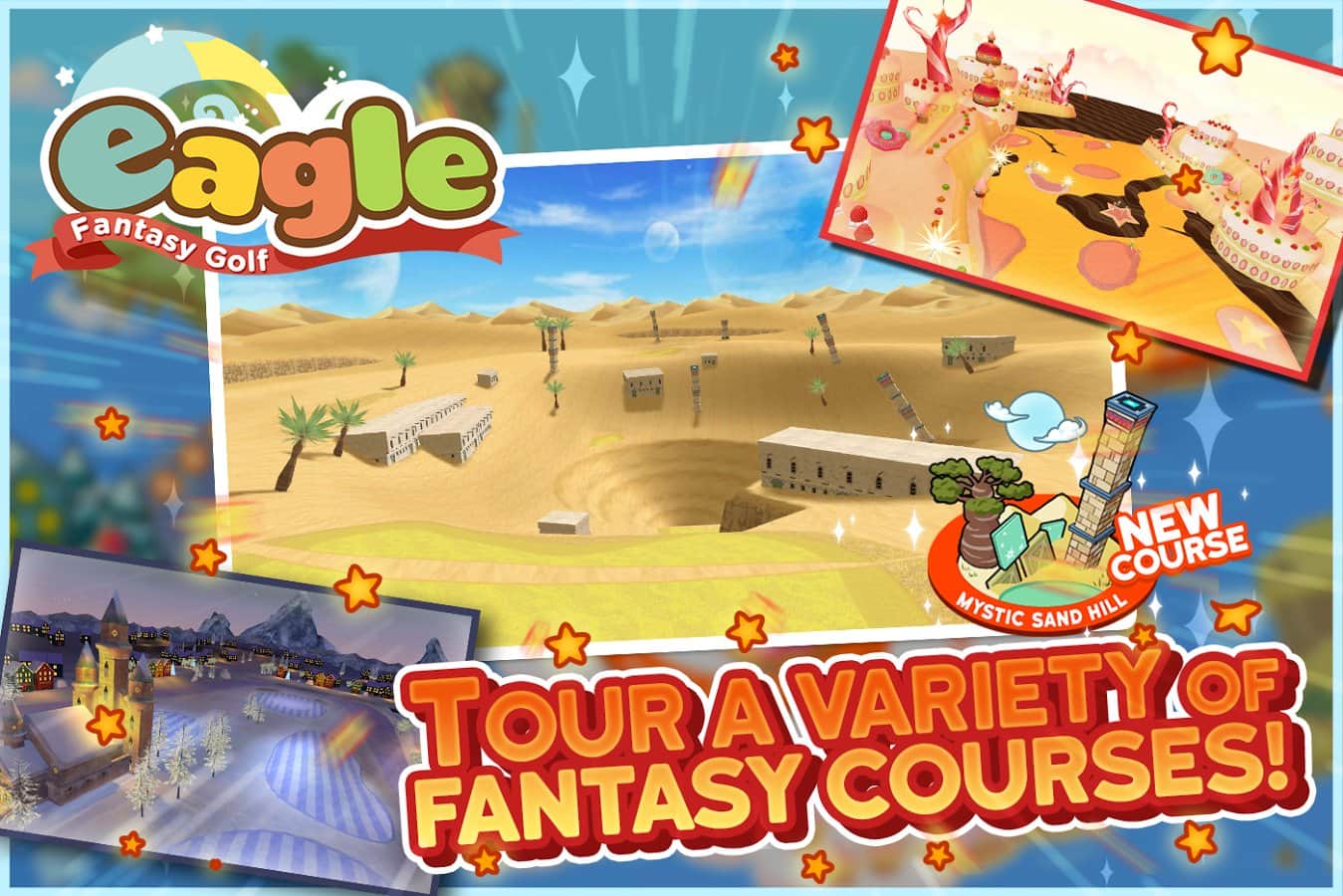 Eagle: Fantasy Golf – un lindo arcade de golf con personajes coloridos, colores vibrantes y mucha diversión derivada del juego. El juego es genial y fácil de manejar, con una campaña para un solo jugador extremadamente interesante y actividades en equipo interesantes. Desarrolla tu personaje, cambia su ropa, personalízalo con equipo deportivo y simplemente juega al golf con tus amigos.