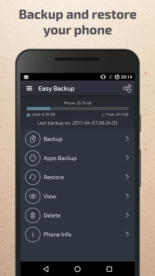 Copia de seguridad y restauración fácil - ¿Tienes demasiados datos importantes almacenados en tu smartphone? No temas perderlos, con esta aplicación, será casi una tarea imposible. Todo lo que necesitas hacer es ejecutarla, seleccionar los elementos deseados y crear una copia de seguridad de los datos. Las copias de seguridad se pueden almacenar en otro dispositivo, tarjeta de memoria o restablecerlas en la nube. Sin embargo, vale la pena señalar que la recuperación de datos se realizará en el momento de su entrada y aquellos informes y otros datos que se grabaron después, los perderás para siempre.
