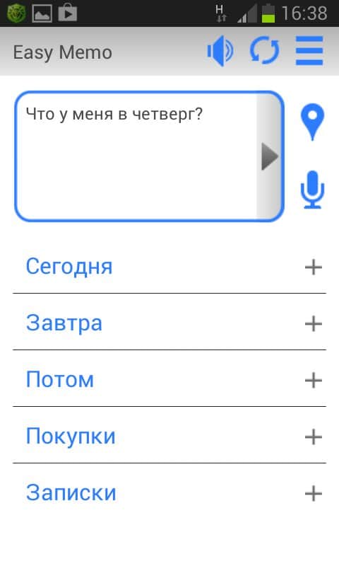 Easy Memo para Android - un programa que te ayudará a dejar notas de voz. Ahora, para mantener las notas aún más fácil, si no sabes qué escribir, simplemente dicta tu nota o recordatorio y se almacenará en tu teléfono. Si es necesario, será fácil escucharla. Hay la posibilidad de anotar en ciertos días.