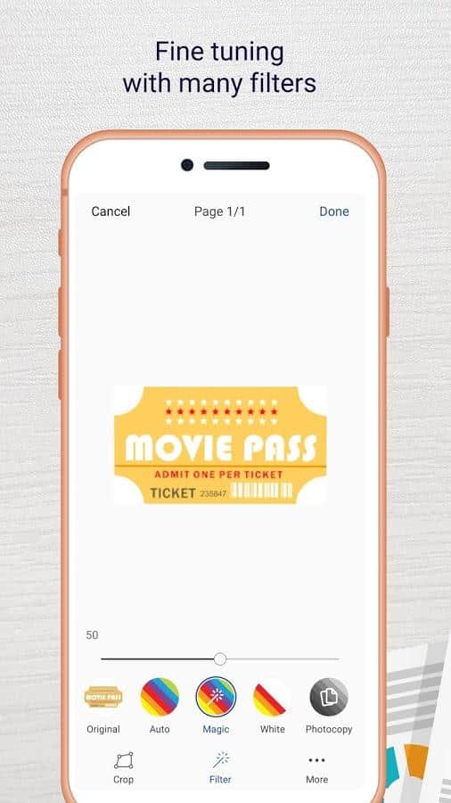 Excelente aplicación para aquellos que trabajan frecuentemente con documentos. A menudo surge la situación en la que no tienes un escáner grande y voluminoso, y el documento de ticket, un recibo o cualquier otro documento que deseas escanear. ¡Ahora el problema está resuelto! Todo lo que necesitas es ejecutar esta aplicación para restaurar el documento a través de la cámara, y el resto lo hará la aplicación.