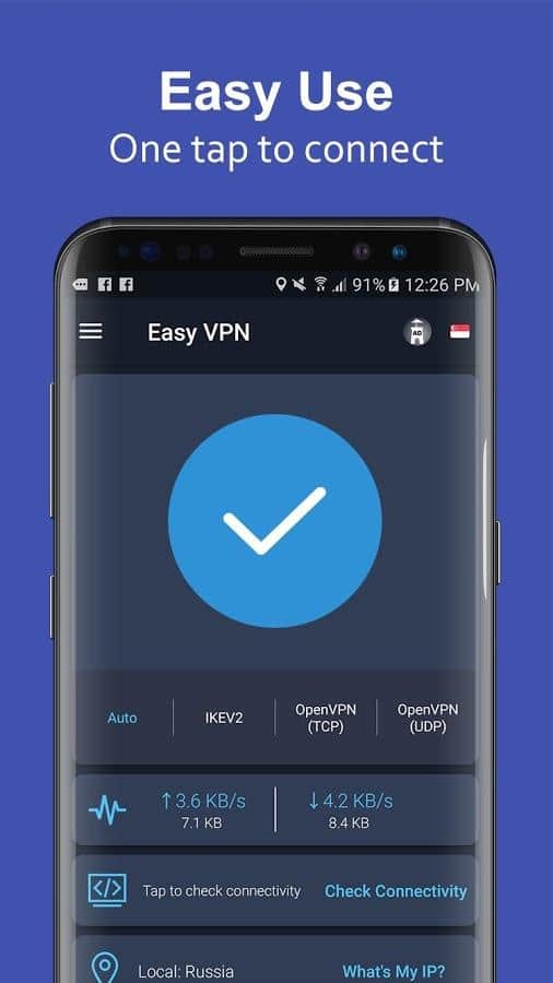 Easy VPN es el mejor proxy VPN ilimitado y gratuito para clientes de Android. Aplicación para dispositivos Android que te permitirá conectarte a sitios y juegos que, por alguna razón, no funcionan en tu país. Todo lo que necesitas hacer es abrir la aplicación, elegir el país deseado y hacer clic en "listo"!