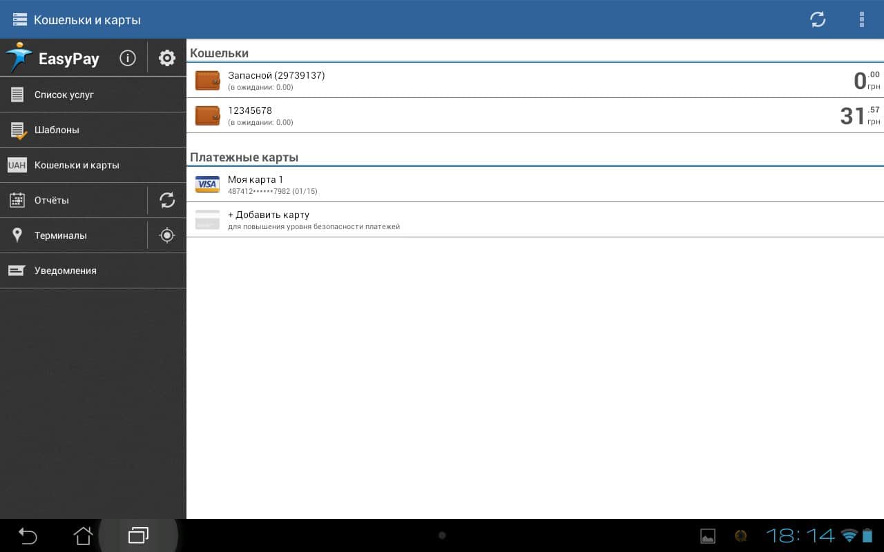 EasyPay - un sistema simple y confiable de pagos electrónicos. Esta aplicación te ayudará en cualquier situación de emergencia, con su ayuda podrás acceder rápidamente a tu billetera electrónica y transferir dinero fácilmente o pagar por el servicio. Con la interfaz y los controles de esta aplicación resolverás cualquier problema, se ha simplificado y diseñado para un uso cómodo.
