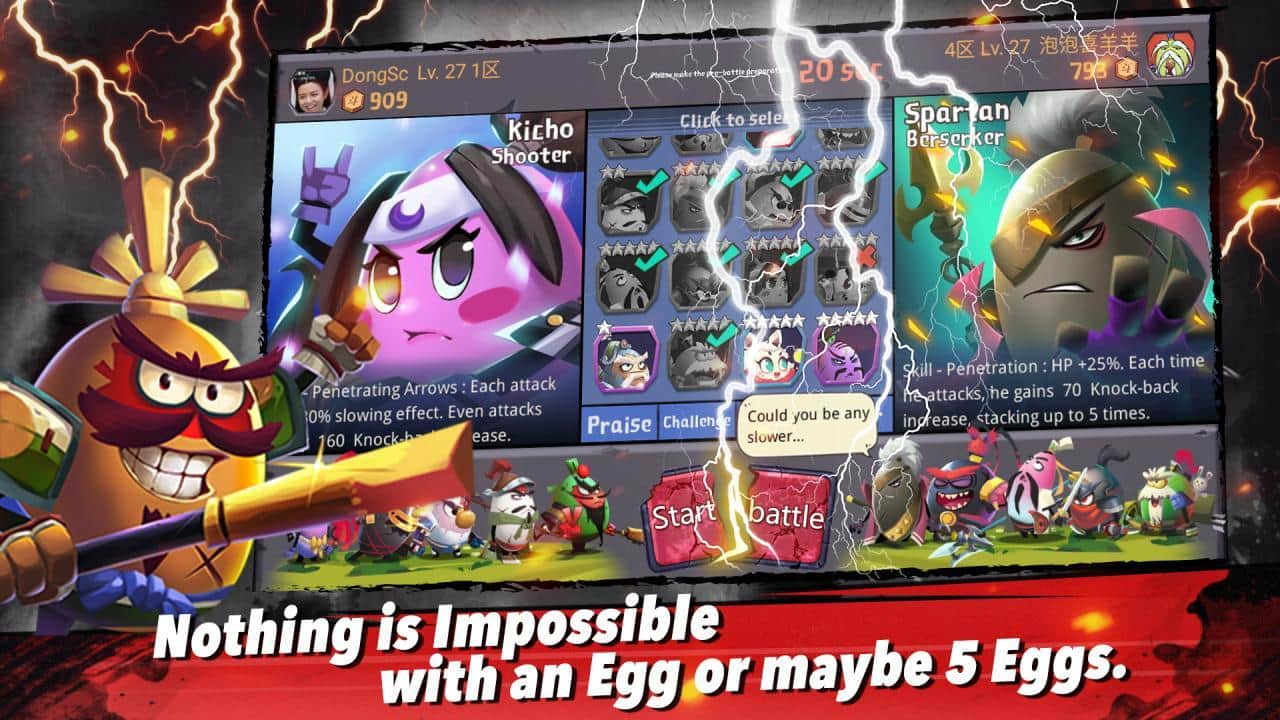 Egg Heroes Saga – estrategia en Android donde operarás un ejército único compuesto por huevos. Reúne tu ejército invencible, que estará formado por luchadores únicos que tienen armas y habilidades únicas. Conviértete en el mayor líder militar y demuéstrales a todos que eres un Gobernador experimentado y capaz de derrotar enemigos poderosos. La batalla en este juego se llevará a cabo en modo automático, el resultado dependerá directamente de la táctica elegida. Entrena y aumenta el tamaño de tu ejército y aprende nuevas habilidades.