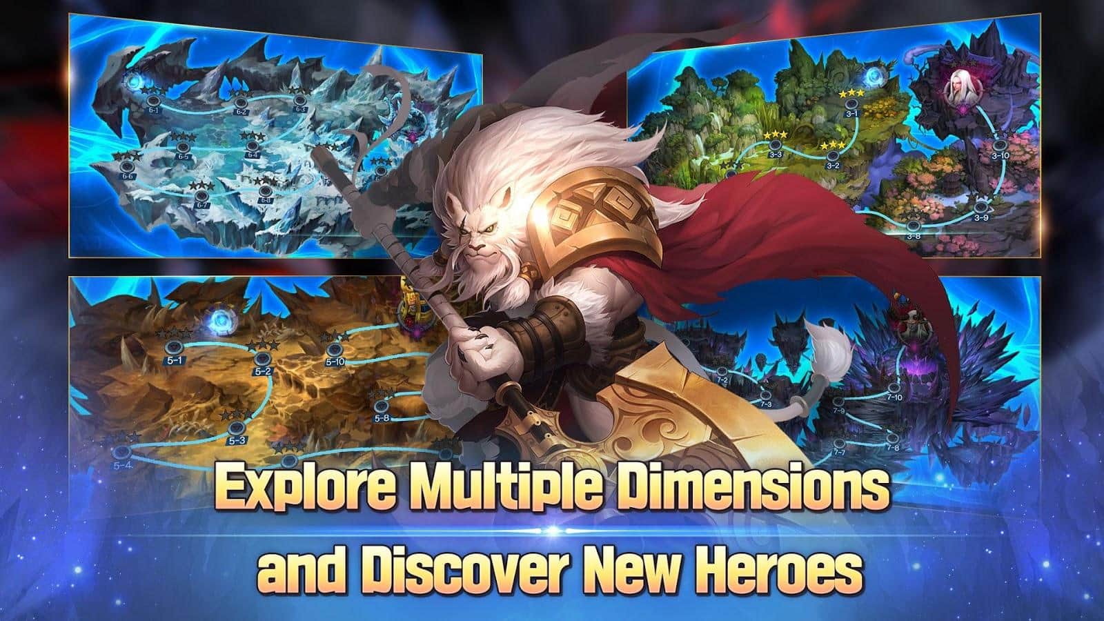 Elune no solo es misteriosa, el mundo está en peligro, sino que también todas las siete dimensiones. Un viaje épico espera a tu héroe, recoge Elune y ayúdalos a derrotar enemigos y jefes muy fuertes, combínalos y obtén probabilidades especiales de magia contra las cuales incluso los enemigos poderosos serán impotentes. En el juego puedes mejorar tus habilidades para batallas más exitosas. Al recolectar Elunes de diferentes clases, podrás formar el equipo más fuerte en las siete galaxias. El juego tiene batallas PVP.