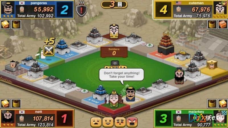 Héroes de 3 Reinos - bastante popular en su momento, personajes multijugador en PC, el juego tiene lugar en la antigua China. El país está en un estado de guerra civil y los tres héroes que lideran una lucha constante intentan unir el país bajo una sola bandera. Más tarde, a partir de los motivos de los Héroes de 3 Reinos, se lanzaron varios clones, incluidas versiones simplificadas para dispositivos móviles, pero aparentemente la atmósfera del juego sigue viva, los desarrolladores prestaron atención a ello una vez más. Dados del Emperador - Estrategia de mesa paso a paso basada en los Héroes de 3 Reinos y a pesar de que la jugabilidad recuerda vagamente a los famosos personajes, los seguidores aún reconocerán a los personajes y tramas queridos. En general, esta nastolka está hecha con la mecánica clásica de juego y el desarrollo de la jugabilidad no es difícil.