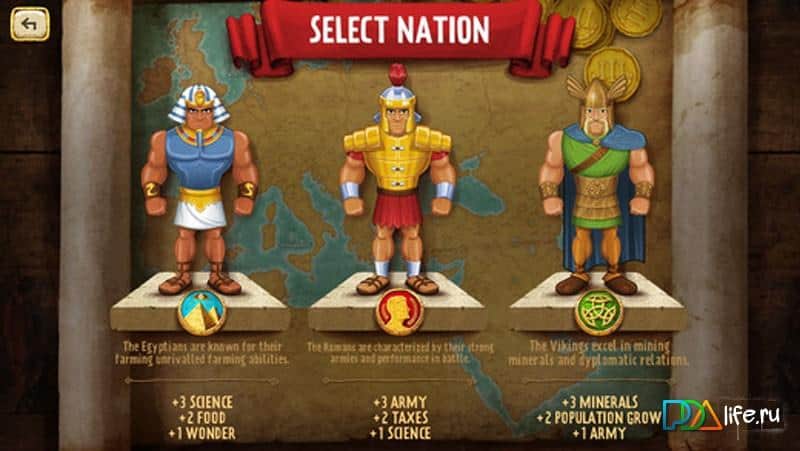 Empire Manager - estrategia histórica por turnos, en la que el presente y los controles. Se te invita a convertirte en el gobernante del Imperio, desarrollarlo y expandirlo. Administra la economía y la tecnología, crea un ejército y conquista nuevas tierras. ¡Conviértete en un gobernante inteligente y un hábil líder militar! Pero primero, elige una nación: ¡los Egipcios, Vikingos o Romanos! Cada nación tiene sus propias características y su propio camino de desarrollo. Pero elijas lo que elijas, ¡solo tu habilidad permitirá que tu Imperio florezca!