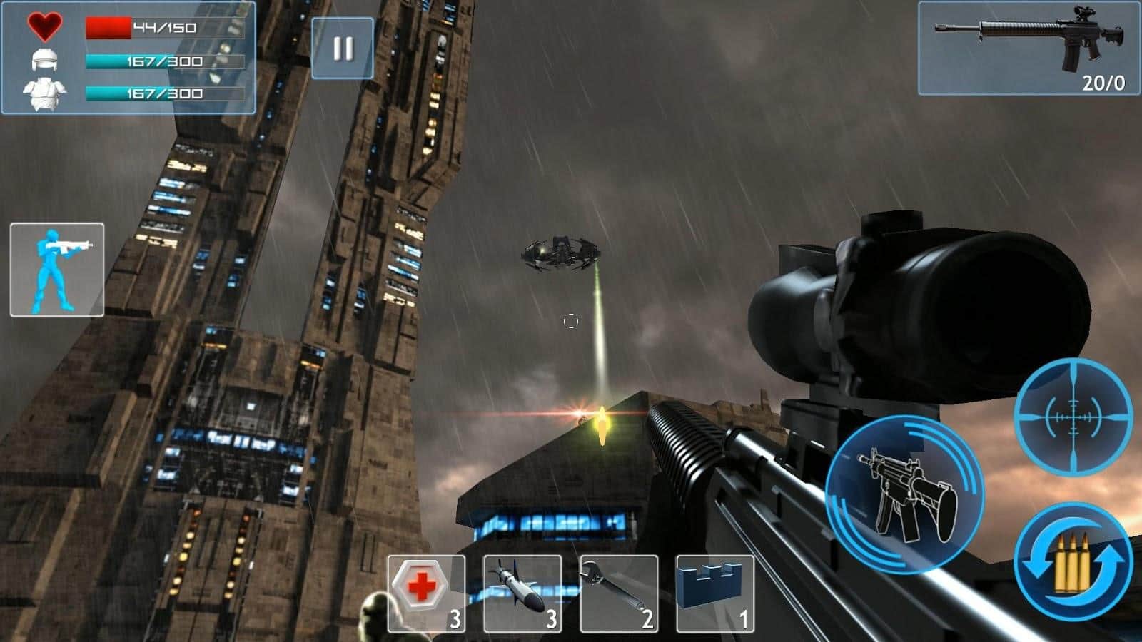 Enemy Strike 2 - han pasado muchos años desde que los seres alienígenas realizaron el último ataque a la Tierra. Los extraterrestres se han vuelto más avanzados en tecnología, pero la humanidad también no se queda atrás. Ahora estarás armado con todos los últimos desarrollos de equipo militar de ambos lados del conflicto. Pero para sobrevivir y proteger todo el planeta, una sola arma no es suficiente, no olvides que la táctica en la guerra es lo más importante.