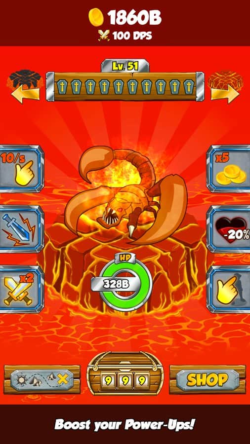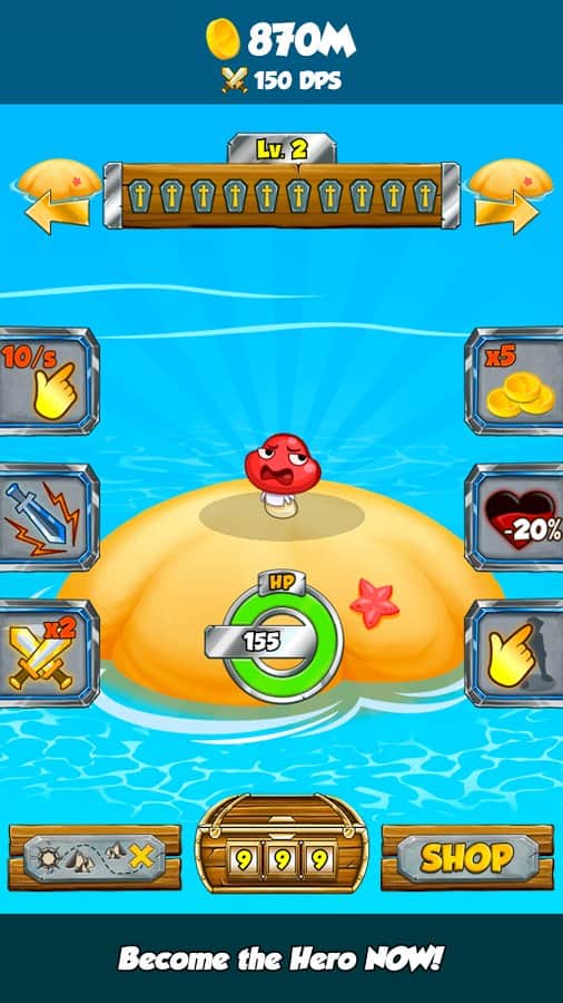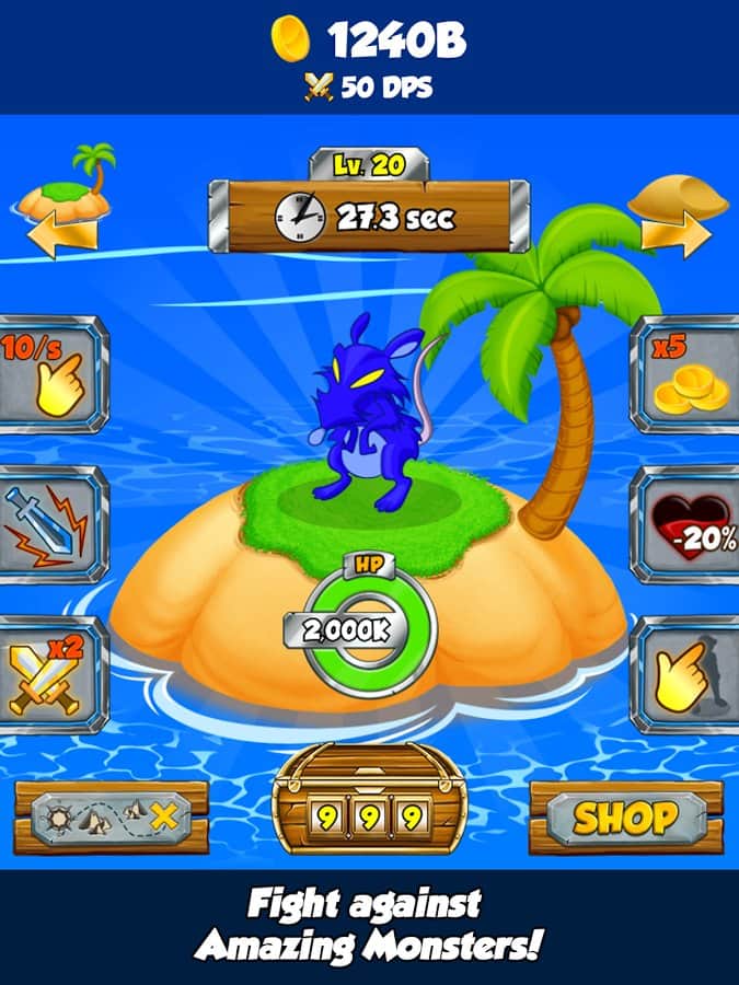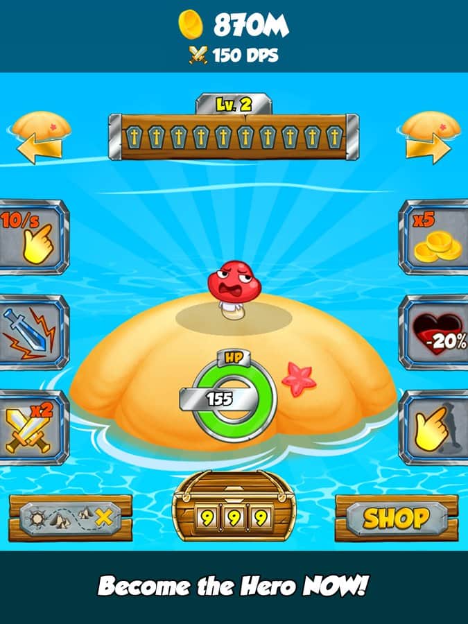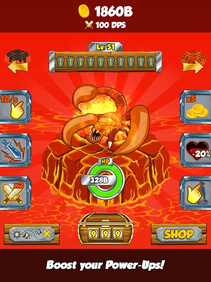 Clicadores épicos - clicador en Android, donde destruirás monstruos. En este juego asumís la responsabilidad de tu planeta, que fue atacado por horribles monstruos y titanes. Tu tarea principal en este juego es hacer clic tan rápido como puedas en la pantalla de tu teléfono o tableta para destruir al monstruo. Verifica la velocidad de tus dedos y establece tu puntuación más alta en este juego. Haz clic en la pantalla y recoge suficiente oro para conseguir al héroe que te ayude a luchar contra los enemigos. Juega este juego sin fin y disfruta de los muchos y variados personajes. Juega con tus amigos y asciende en la tabla de clasificación.