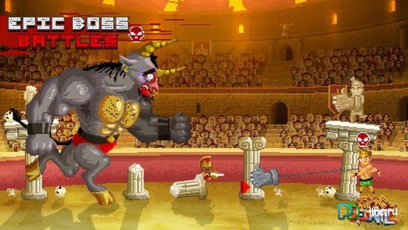 Epic Flail es un juego de acción en dos dimensiones para IOS donde ayudas al Gladiador a ganar la competencia. Este juego te lleva al Coliseo Romano donde combatirás con otros gladiadores en una lucha a vida o muerte. La dificultad del juego radica en que tus oponentes tendrán habilidades únicas que les permitirán flotar en el aire, saltar hacia los cielos y destruir todo a su alrededor usando tu espada. Elige a tu héroe y participa en un combate mortal. El juego te deleitará con su ritmo vertiginoso, excelentes gráficos brillantes y una historia fascinante. Juega este juego y derrota a tus oponentes en el ring, logrando reconocimiento y fama.