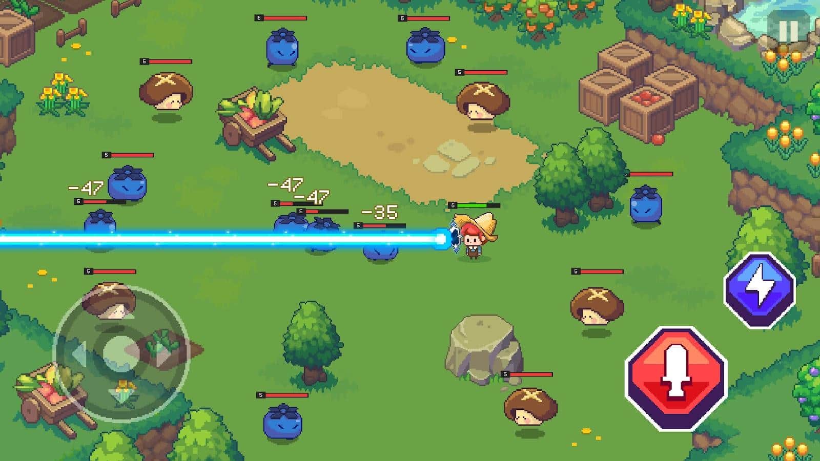 Epic Garden: Juegos de RPG de Acción es un fascinante juego de acción en pixel para Android con una idea original. Los jugadores defenderán a los agricultores locales que están siendo atacados por babosas, bayas, verduras y frutas; la culpa de esto probablemente sea el uso de pesticidas dañinos y OGM. Una variedad de ubicaciones con diferentes biomas están disponibles en el juego, donde el jugador controlará al agricultor, protegiendo su granja de los ataques enemigos con armas láser y superpoderes. Una de las ventajas del juego es la música de RPG personalizable, que ayudará a crear la atmósfera del juego al estilo de The Legend of Zelda.