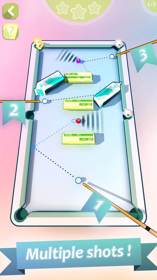 Epic Pool - Trucos de Billar es un juego de rompecabezas para Android donde jugarás a un billar inusual. En este juego verás una mesa en la que están colocados una variedad de obstáculos y barreras, tu tarea es meter las bolas en los bolsillos y tratar de pasar el nivel. Toca la pantalla de tu teléfono o tableta y elige la trayectoria y la fuerza de impacto deseadas y golpea la bola blanca. Intenta meter todas las bolas en el menor número de movimientos y evita todos los obstáculos en forma de botellas, cartones e incluso ventiladores. Juega este juego y logra excelentes resultados, compitiendo con amigos. El juego cuenta con más de 45 niveles con física realista.