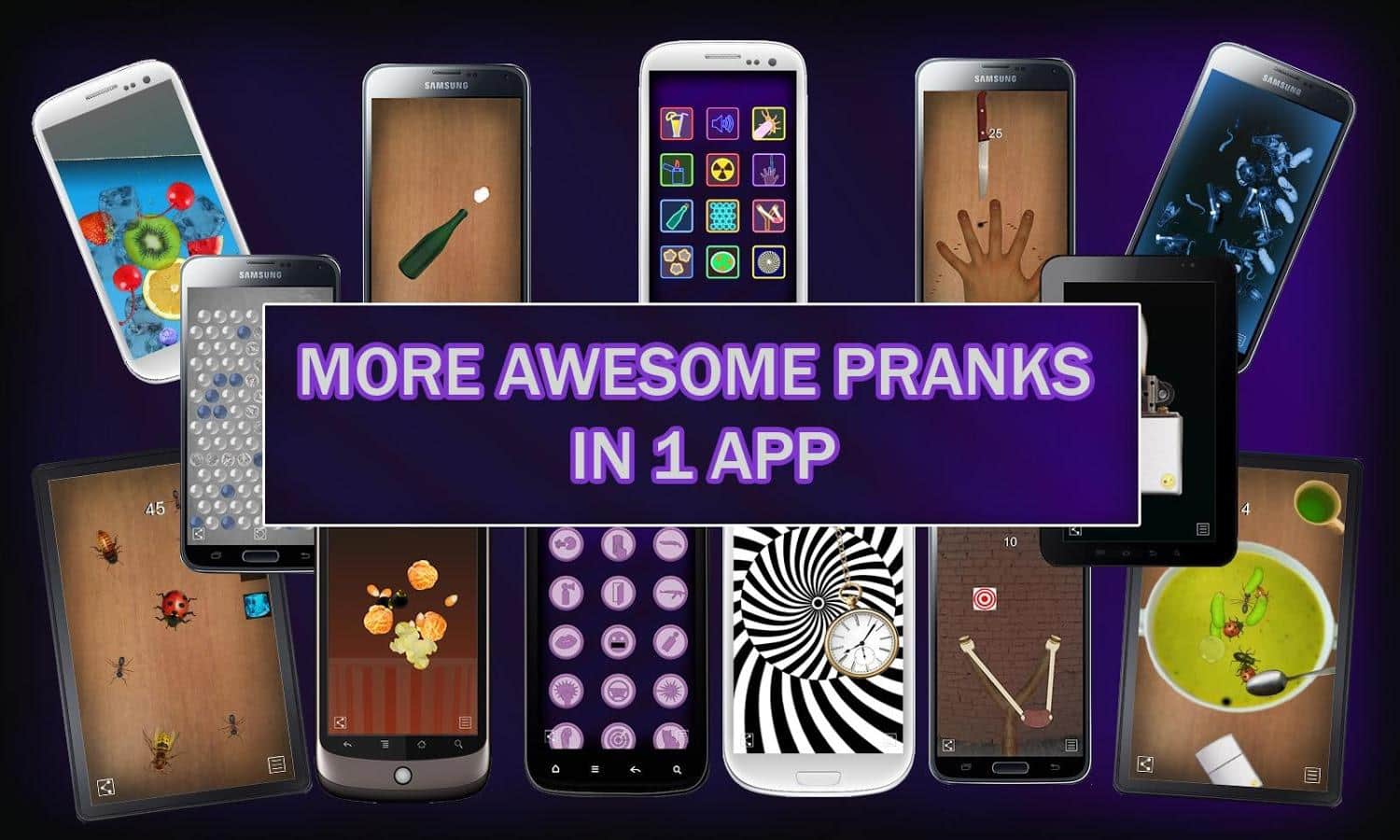 Epic Pranks Simulator – simulador para Android, que contiene numerosos mini-juegos y bromas. Esta aplicación es perfecta para todas las edades en la que todos encontrarán algo que les pueda interesar. El juego contiene 12 bromas diferentes, tales como: SIM bebida con un insecto revolviéndolo, simulación de encendedores-linternas con efectos de sonido divertidos, insecticida, escáner de rayos X, mano contra un cuchillo, botella, burbujas que estallan, honda, sopa de insectos y espiral hipnótica. Juega a este juego y disfruta de tu tiempo libre jugando bromas divertidas con tus amigos.