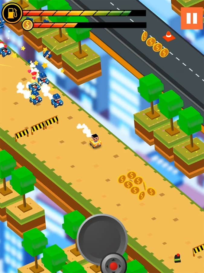 La jugabilidad de Escape Rápido para Android es un clásico juego de carreras de arcade, el juego se divide en niveles que debes completar conduciendo un coche. Cada pista está llena de diferentes obstáculos y trampas que debes evitar, mientras haces un camino en el menor tiempo posible, recogiendo tantos bonos y mejoras como puedas. Visualmente, el juego está diseñado en un agradable estilo cúbico que complementa la imagen general.