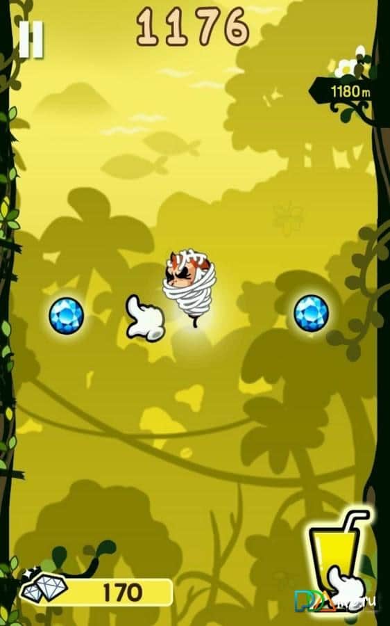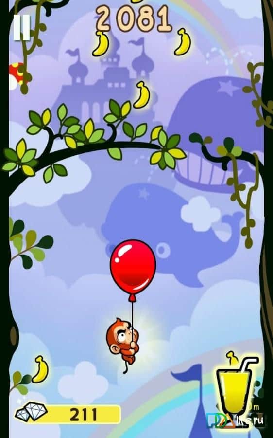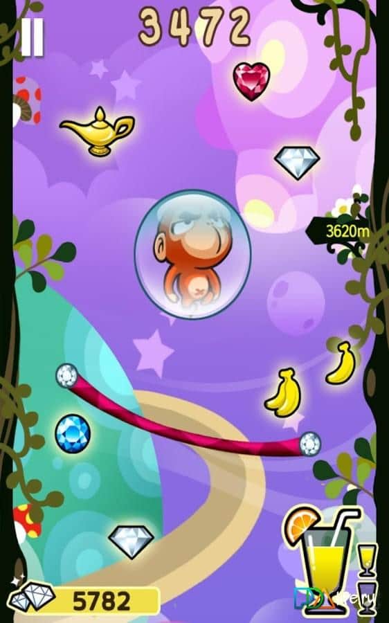 Escape The Ape es un gran saltador y brillante: un pequeño y valiente mono se fue de caza de tesoros en la jungla. Los diamantes están escondidos en lo alto y para conseguirlos, tenemos que esforzarnos constantemente hacia arriba. Eso es exactamente lo que ayudarás a hacer: saltar, agarrarte a un globo que te eleva o usar la burbuja para volar. Y en el camino, recoge monedas para obtener bonificaciones y diferentes sorpresas.