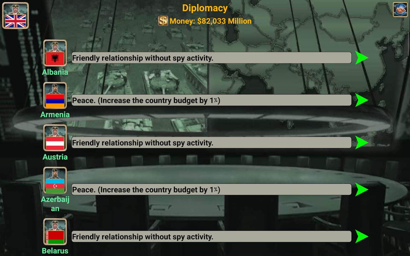 Imperio Europeo 2027 – estrategia en Android donde desarrollarás el escenario de guerras políticas en 2027. En este juego, la trama comienza con el hecho de que el recién elegido Presidente de los Estados Unidos centró su política en los asuntos internos del país y comenzó a retirar fuerzas militares de todo el mundo. Los mercados mundiales colapsaron después del estallido de la guerra en el Medio Oriente y en el mar de China Meridional. Europa quedó sola con el interminable flujo de refugiados y la amenaza del Este. Conflictos y guerras se están gestando en todo el mundo y algunos generales decidieron apoderarse del poder y declarar una rebelión. En este juego, jugarás el papel de un líder rebelde que tiene que resolver problemas políticos globales y jugar mil escenarios posibles.