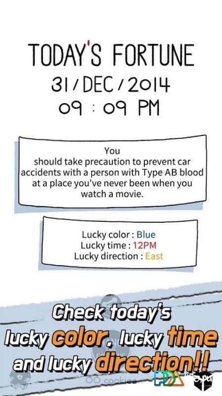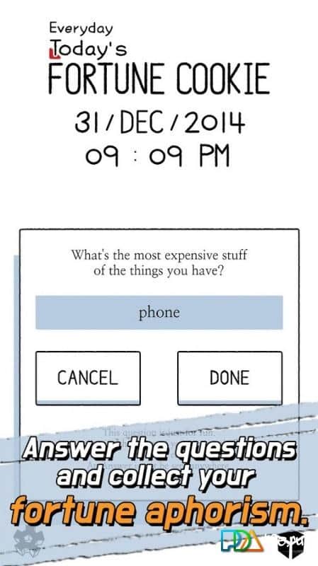 No todos los días encuentras en una galleta un trozo de papel con un texto, pero ahora se convertirá en una tradición diaria. Los creadores del juego Everyday FortuneCookie Today's ofrecen diariamente romper la galleta y leer lo que está escrito en el papel dentro. A menudo, estas son afirmaciones asombrosas, y a veces tareas ridículas. Colecciona aforismos y comprueba tu suerte cada día, recibiendo notificaciones adecuadas y remuneraciones junto con los problemas reales que podrían ser útiles en la práctica. ¡Haz que tu vida sea especial cada día!