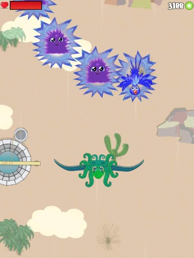 Evil Muncher / Zhevastik es un juego divertido adecuado tanto para niños como para adultos. En este juego jugarás como un pulpo que viaja por el mundo. ¡Pero no todo va bien, los pájaros enojados y otras criaturas quieren comérselo! Todo lo que tiene nuestro héroe son sus tentáculos, con los que rebota. Con uno o dos dedos, determinarás la posición de nuestro justiciero y masticarás a los enemigos con el movimiento habitual de acercar o el toque convencional de la pantalla.