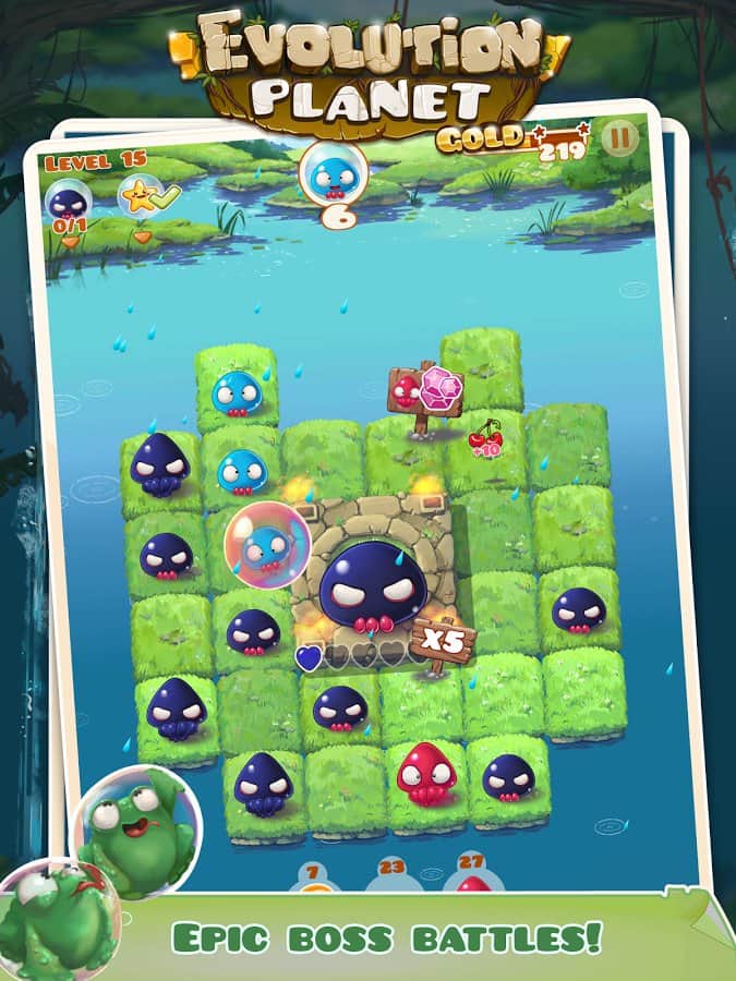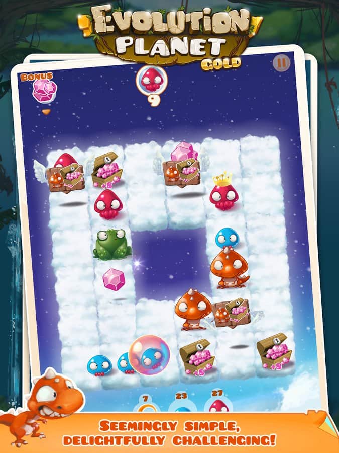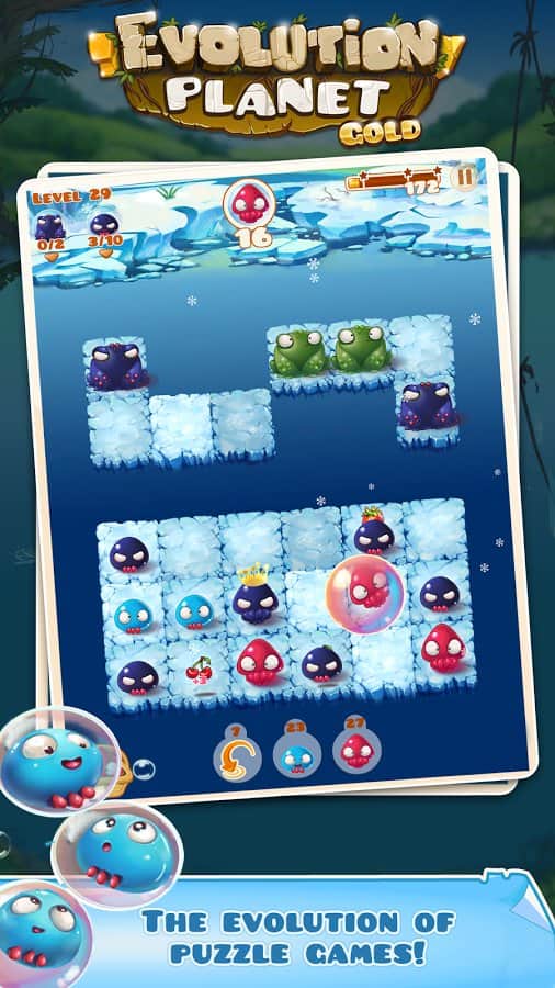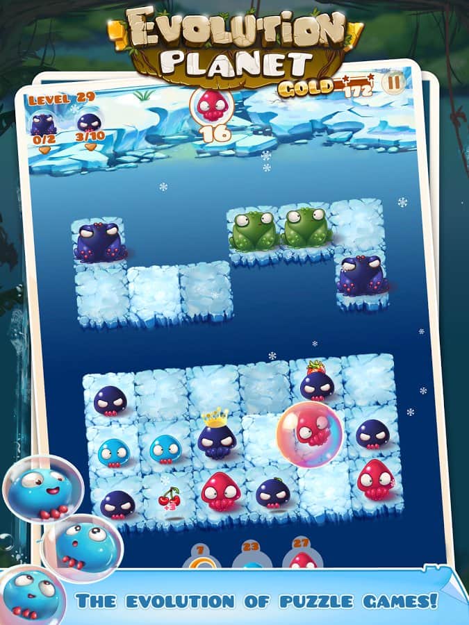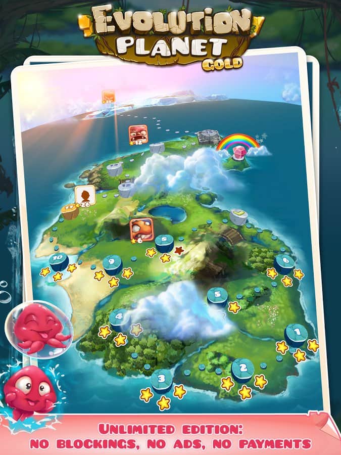 En las plataformas móviles, los juegos de rompecabezas de tipo tres en línea se han vuelto cada vez más populares, con la etiqueta de 2014. Sin embargo, la idea clásica de los juegos ha quedado atrás en comparación con las opciones que ofrecen los juegos modernos, por lo que los desarrolladores luchan por crear algo nuevo y a veces obtienen proyectos bastante interesantes, como Evolution Planet. La jugabilidad combina todos los elementos esenciales de los rompecabezas de coincidencias, y es particularmente notable la implementación común y una excelente gráfica. Planet Evolution: Gold Edition - versión premium del juego que no tiene publicidad, bloqueos ni compras dentro del juego, por lo que los aficionados al género pueden disfrutar del proceso sin incomodidades.