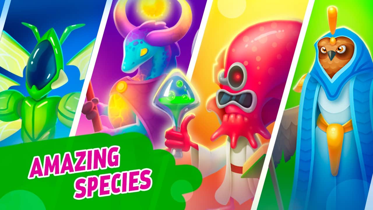 Evoworld - Fusiona para evolucionar la vida en la isla – un fascinante clicker en Android, donde te ocuparás de la evolución de las especies. En este juego, serás transportado a una isla perdida en el océano y tratarás de poblarla con nuevos tipos. Esta isla contiene muchas zonas naturales diferentes, como: arenas calientes, una laguna tropical, altas montañas y prados verdes. Este es el lugar perfecto para comenzar tus experimentos con la evolución. Cada región de la isla está creada para el desarrollo de su rama de evolución. Comienza tus experimentos con un poco de ADN y consigue nuevos tipos. Pobla la isla con nuevas formas de vida y solicita la ayuda de un científico local en situaciones difíciles. Consigue los tubos y desbloquea nuevas áreas en el mapa.