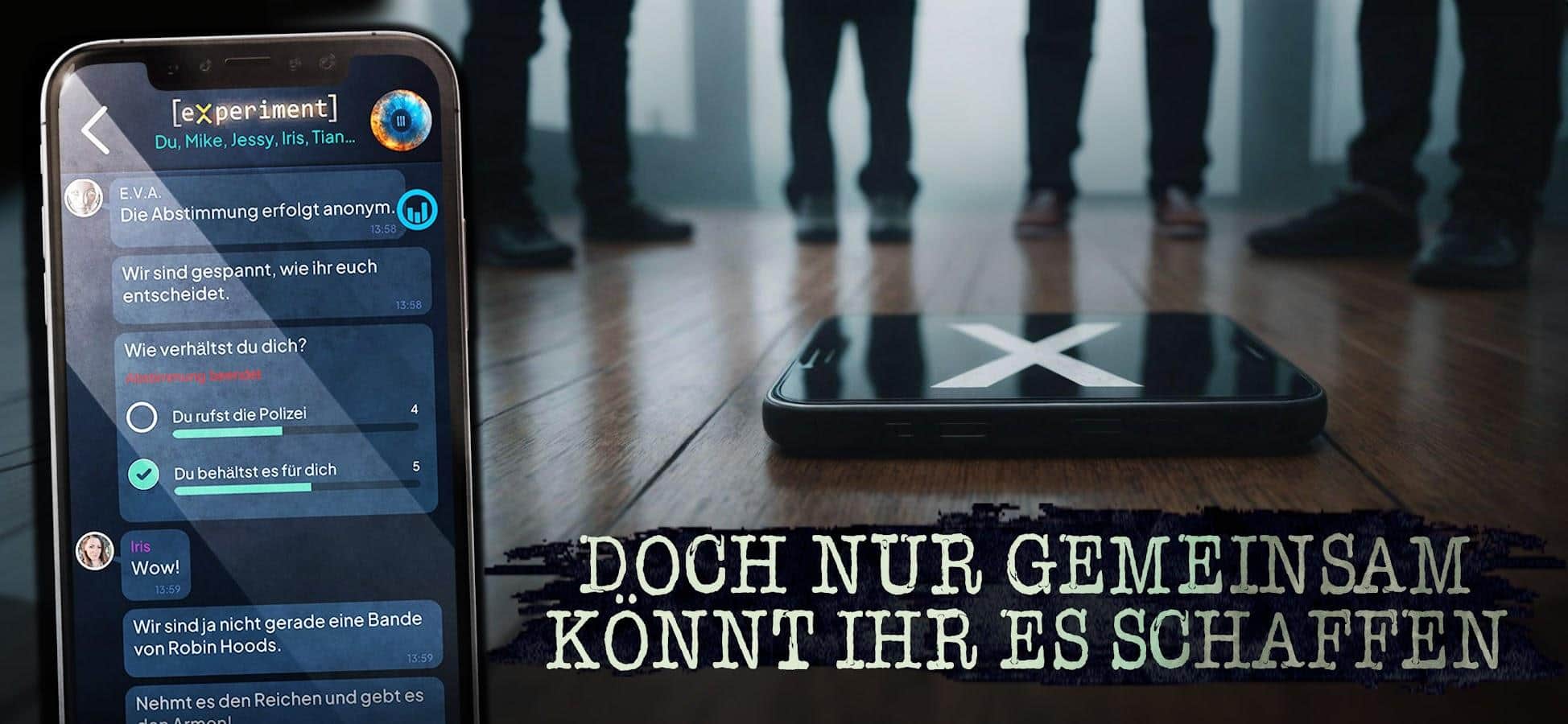 ¿Experimento - bueno o malo? - Te conviertes en un participante de un misterioso experimento psicológico, entrando en un grupo de extraños. Juntos, enfrentarán tareas que supuestamente están destinadas a estudiar la dinámica de grupo. Sin embargo, el inocente comienzo se transforma gradualmente en un juego que difumina las líneas entre la realidad y la ficción, donde la demostración de poder se convierte en el tema central. ¿Qué hay detrás de este experimento? ¿Quién está orquestando los eventos y cuáles son sus objetivos? Para descubrir la verdad, tendrás que tomar decisiones difíciles y confrontar desafíos que pondrán a prueba tus límites morales. Tus elecciones determinarán el curso de la historia en este tenso thriller psicológico interactivo. ¿Hasta dónde estás dispuesto a llegar?