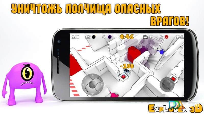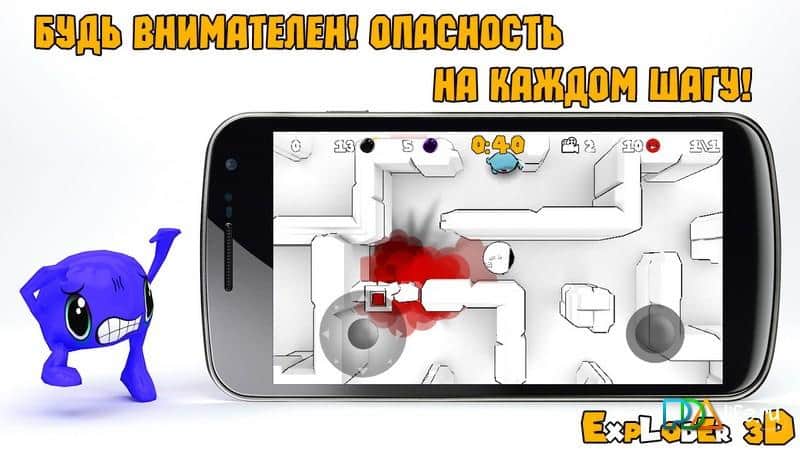 Exploder 3D – gran juego de rompecabezas de laberinto de arcade para Android. Sumérgete en un mundo de laberintos infinitos que están plagados de una gran cantidad de trampas peligrosas y enemigos traicioneros. El objetivo es encontrar el camino más corto para salir del laberinto. En el laberinto te encontrarás con muchos monstruos peligrosos, que intentarán hacer tu vida más difícil. En cada laberinto hay trampas que bloquean el camino hacia la salida, esquívalas o utiliza bombas, cuyo número está restringido en el juego. El tiempo también juega en tu contra, así que no dudes, de lo contrario tendrás que comenzar el nivel de nuevo. El juego se integra con el perfil de Google +, así que siéntete libre de competir con tus amigos por mejores resultados. Gran juego con buenos gráficos, excelente música y una jugabilidad única.