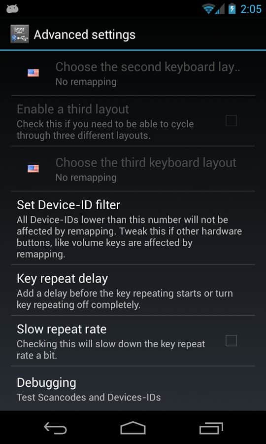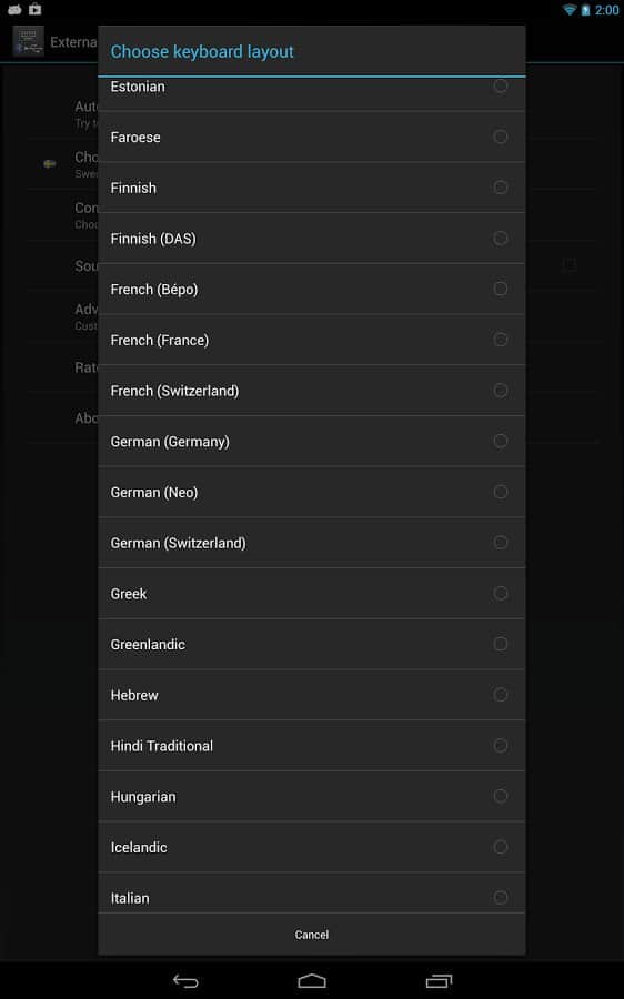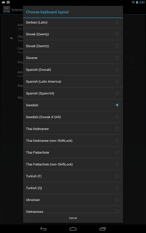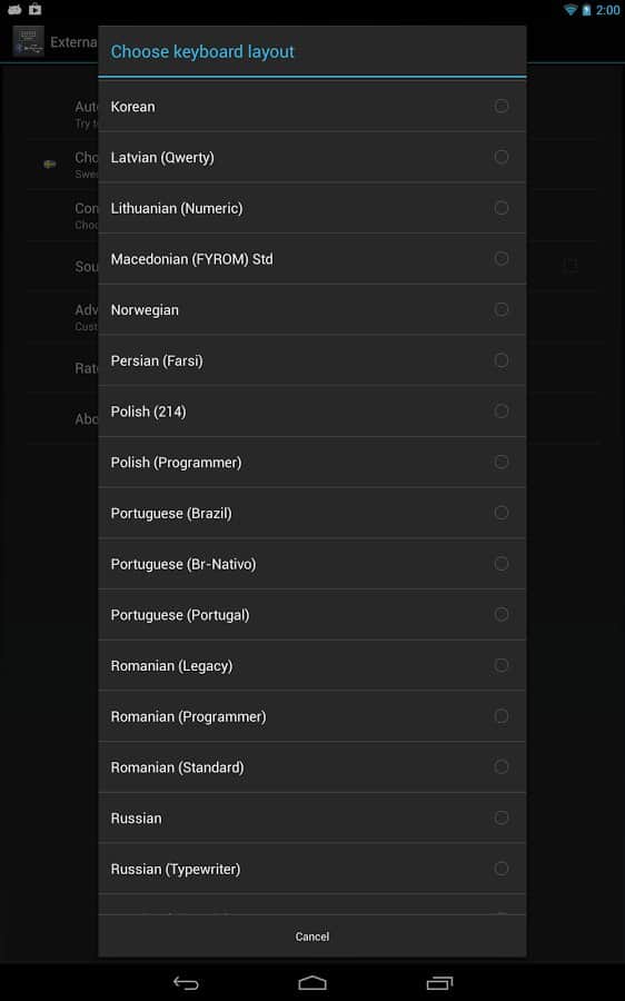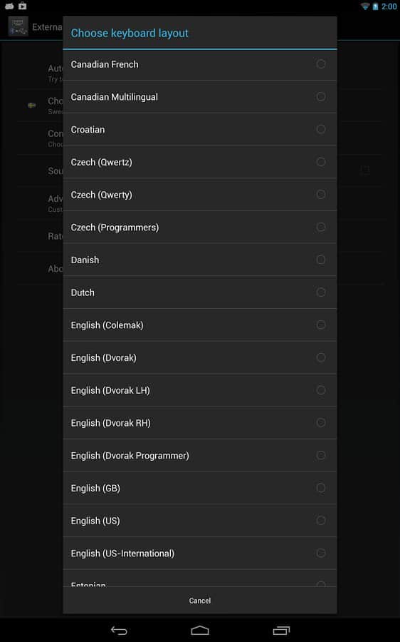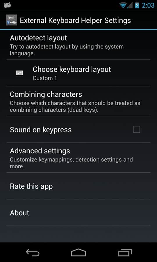 External Keyboard Helper Pro - el programa te permite mantener el control sobre un teclado externo Bluetooth o USB para Android. En el momento de encender/apagar el teclado externo, te informa automáticamente sobre ello, soporta una gran cantidad de distribuciones y, lo más importante, tiene muchas configuraciones.