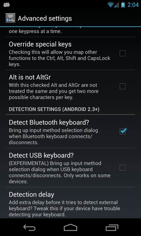 - Muestra automáticamente un diálogo para seleccionar el Método de Entrada, cuando conectas o desconectas el teclado Bluetooth (Android 2.3 +).