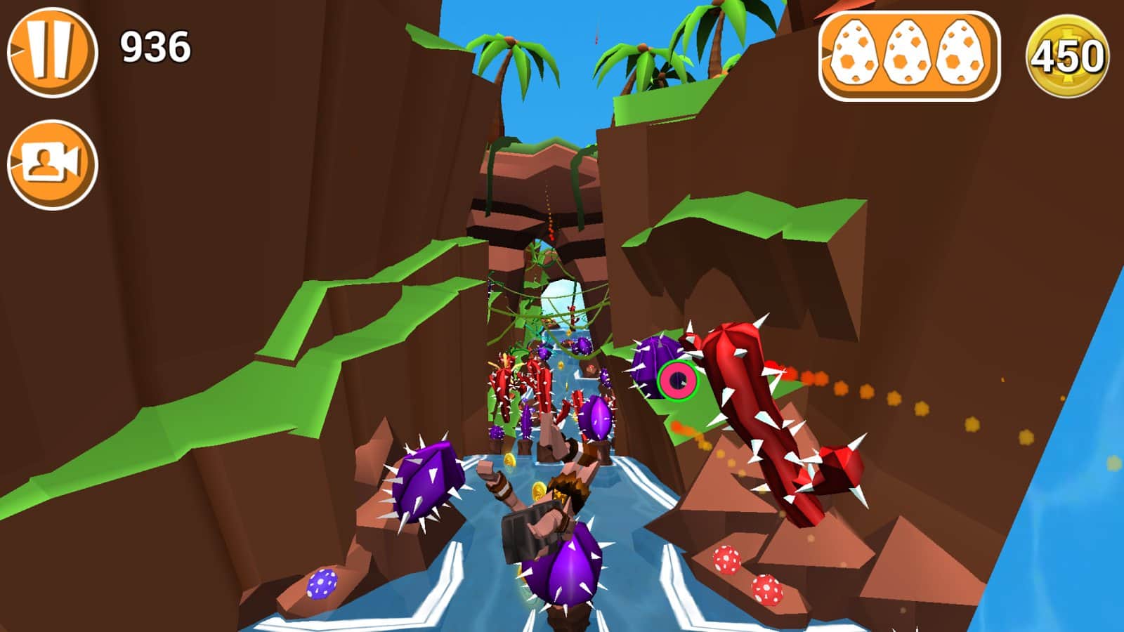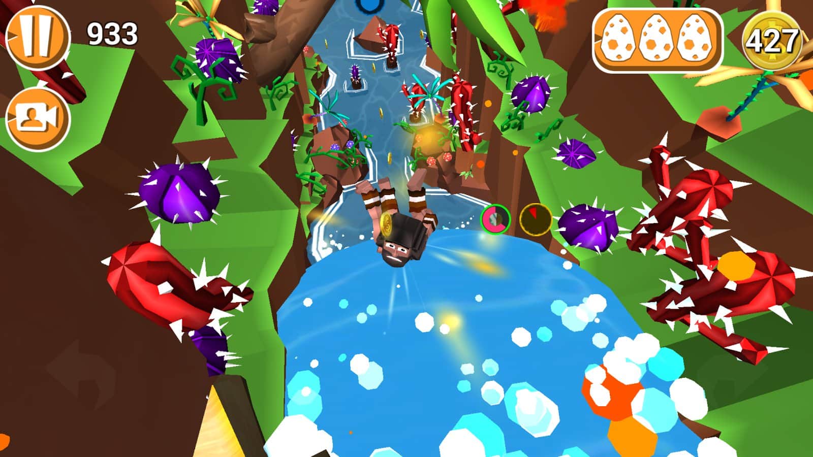 Faily Tumbler – un juego divertido para Android donde controlarás al héroe principal, que encontró una forma inusual de descender desde lo alto del volcán. Nuestro héroe se llama Phil Faile, también conocido como Zarine, y escaló el volcán para llegar al nido del dinosaurio, pero de repente el volcán comenzó a erupcionar y el héroe comenzó a caer. Ahora está a una gran velocidad rodando por el acantilado y tu tarea principal será ayudarlo a superar todos los obstáculos en el camino. Al moverte, supera obstáculos y destruye enemigos en el camino con un escudo especial. Por cierto, no olvides recoger los bonos y muchos más bonos.