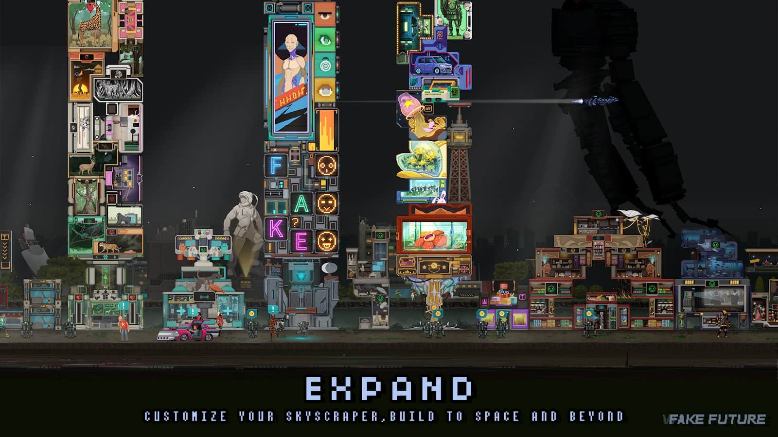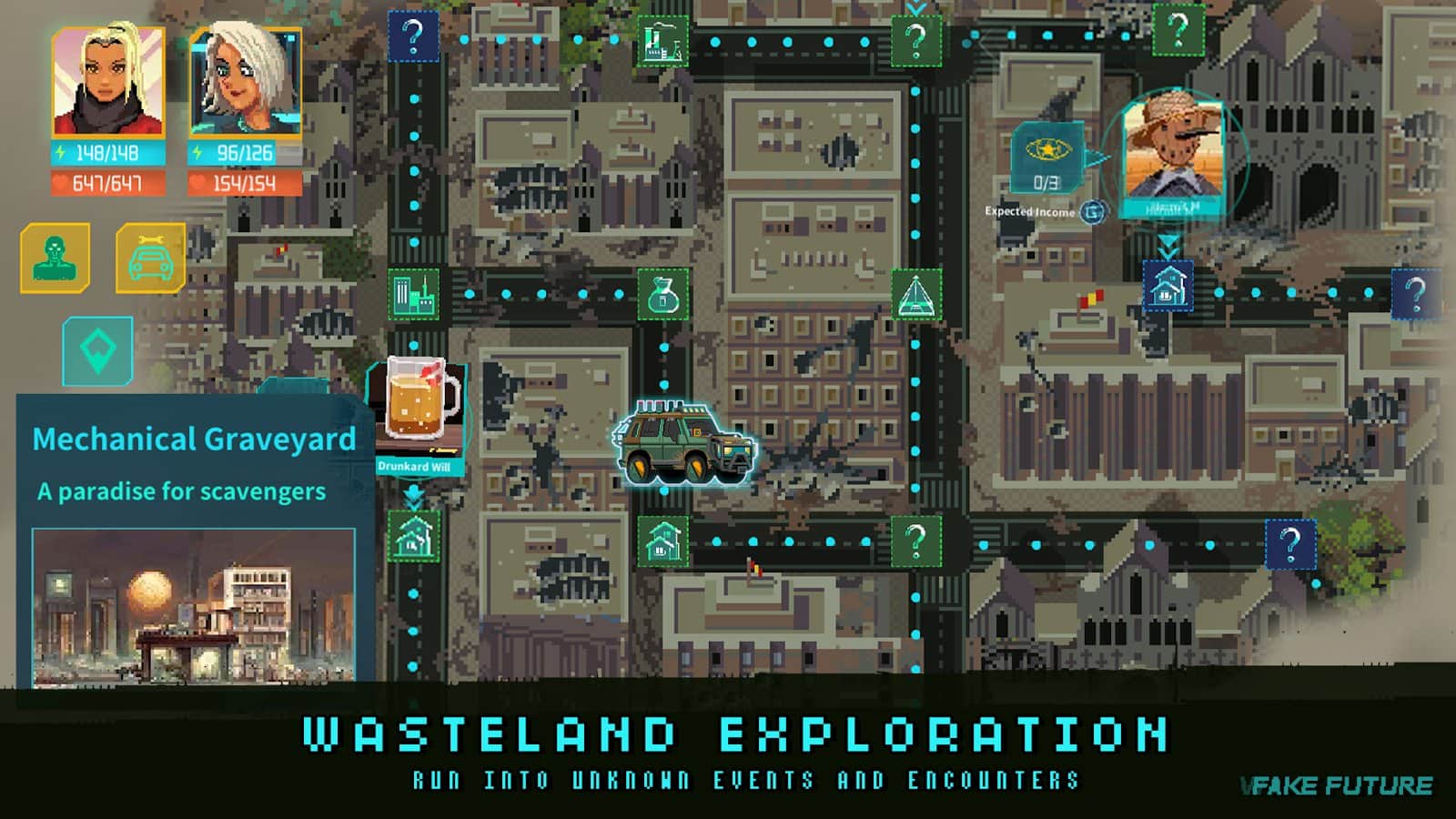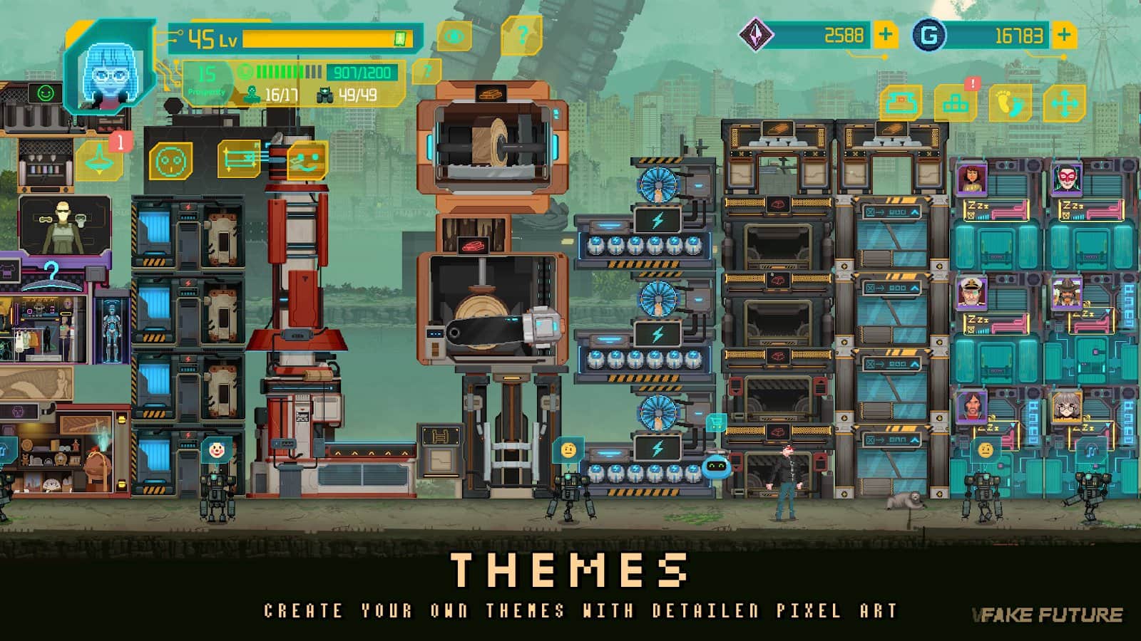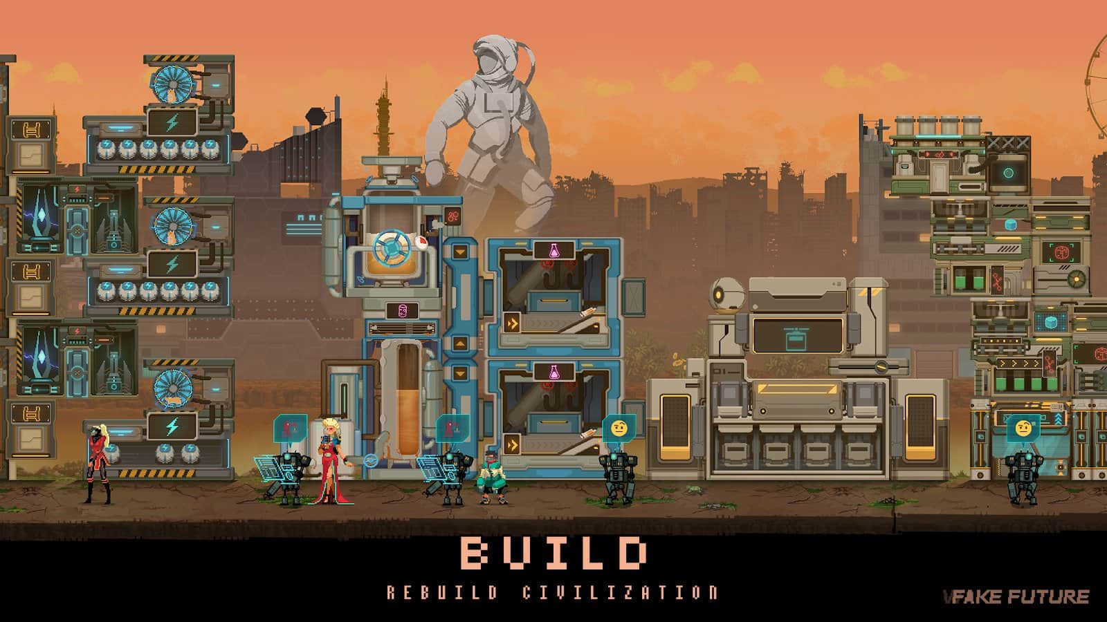 Futuro Falso - Sumérgete en el mundo de la tecnología y la ciencia, en el que debes descubrir los secretos de un misterioso sistema de inteligencia artificial. ¡Te encontrarás en el centro de un enorme mundo que incluye desiertos, bosques, minas y túneles llenos de emocionantes aventuras e historias que deben ser vividas! ¡Reúne a tu equipo y sal a la carretera hoy mismo! Desenreda los misterios asociados con la vida extraterrestre y abre nuevos horizontes de conocimiento. Debes revelar los secretos de toda la tecnología que controla el mundo.