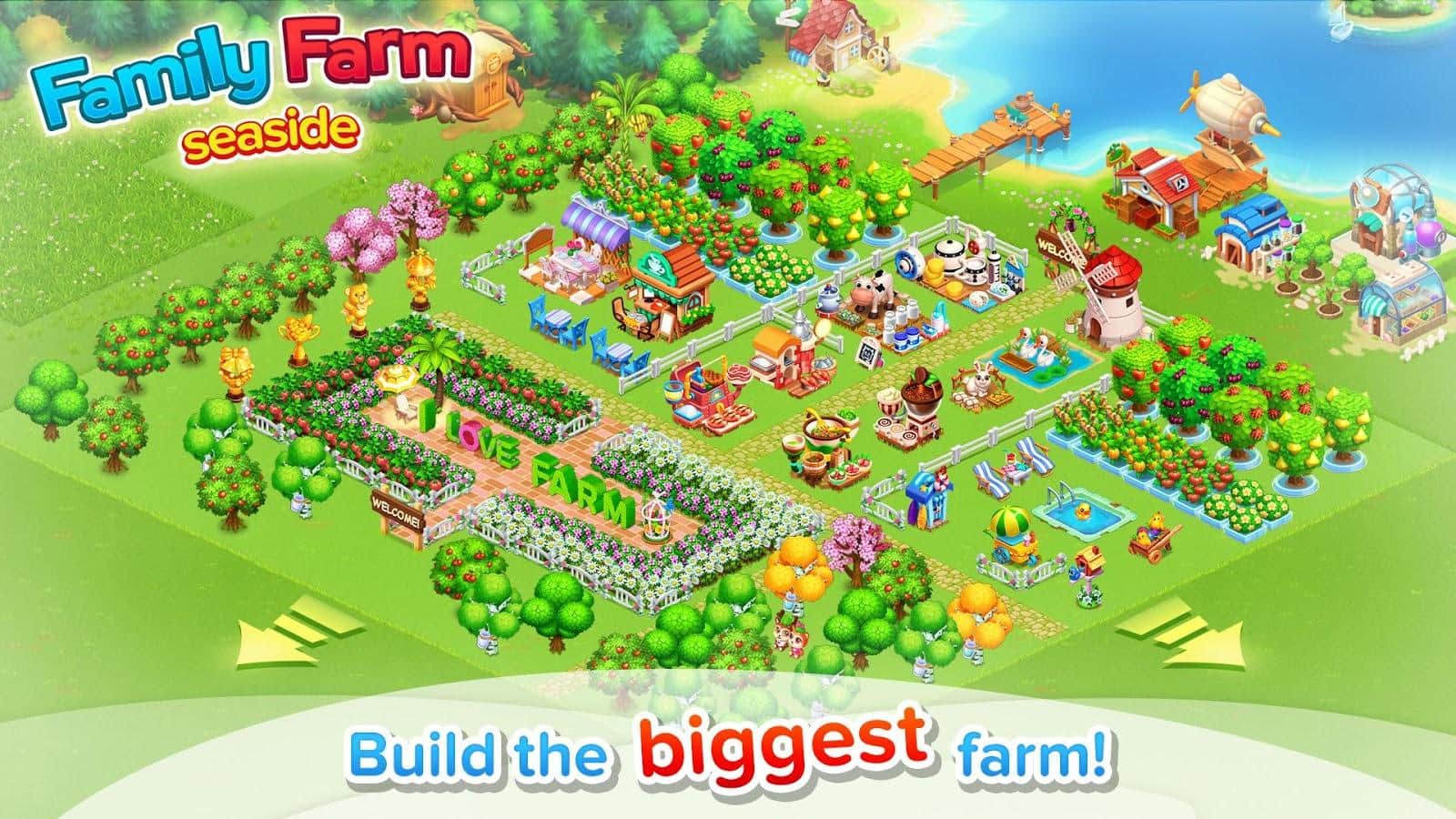 Family Farm / Family Farm - una gran granja para nedroid con gráficos coloridos y excelentes características. Planta plántulas, cosecha, compra y planta nuevas semillas. Además, tienes la oportunidad de comprar nuevos edificios y fabricar nuevos productos. También tienes la oportunidad de invitar amigos y hacer amigos con los vecinos de la granja. El juego tiene muchas ubicaciones, como los habituales prados verdes y el mar preberite.
