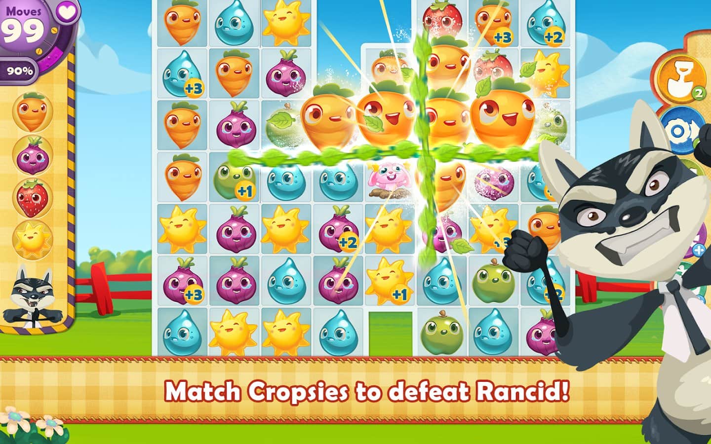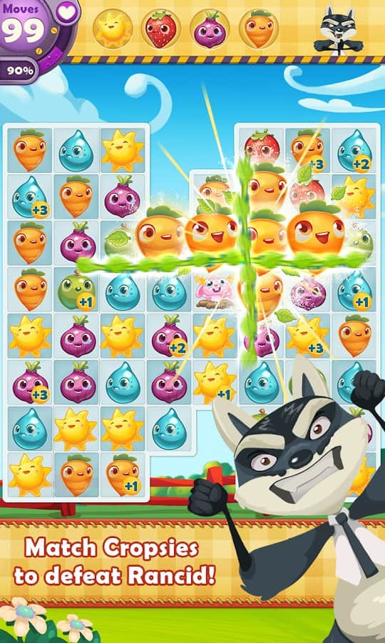 Farm Heroes Saga - un emocionante rompecabezas tipo tres en raya para Android. El juego es un hermoso juego de rompecabezas, donde el papel de las fichas en el campo son frutas. También en el juego encontrarás varios animales de granja. El juego tiene gráficos muy hermosos y vívidos, que afectan muy positivamente la elección de tus hijos. Un gran número de niveles te hará no despegarte del juego durante mucho tiempo.