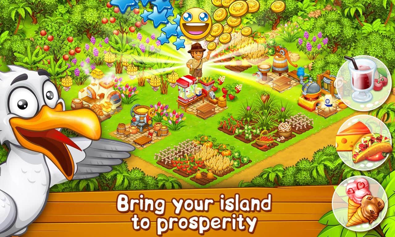 Granja Zoológica: Pueblo de la Isla Bahía – estrategia en Android donde tu tarea será construir en la isla exótica de tu granja. Explora hermosas ubicaciones de la isla y busca un lugar adecuado para tu granja. Comienza pequeño, cultivando en tu granja plantas y frutas exóticas y crea un oasis con hoteles cómodos y zoológicos con animales salvajes donde los turistas pueden relajarse del bullicio de la ciudad. Mueve por la isla y descubre nuevos lugares y civilizaciones de hombres antiguos, donde puedes encontrar muchos tesoros y artefactos. Completa todas las emocionantes misiones del juego y realiza toda la expedición a tu isla.