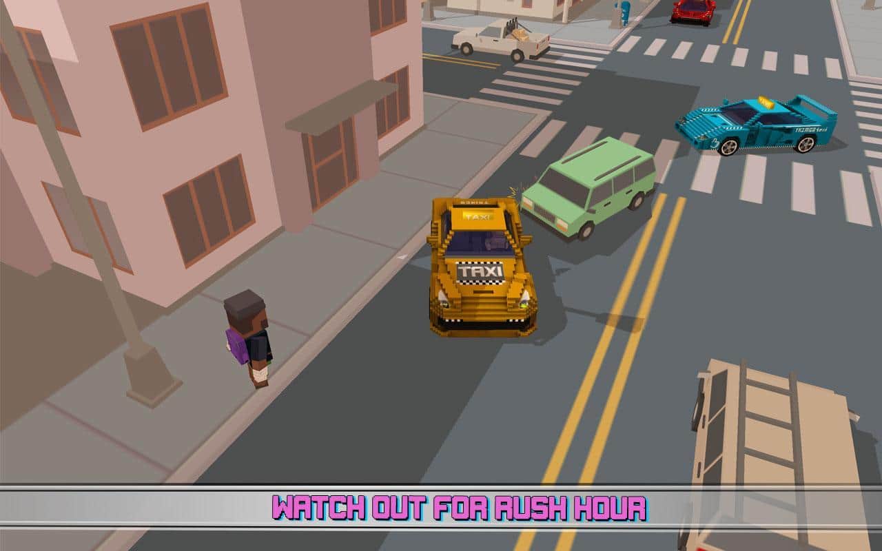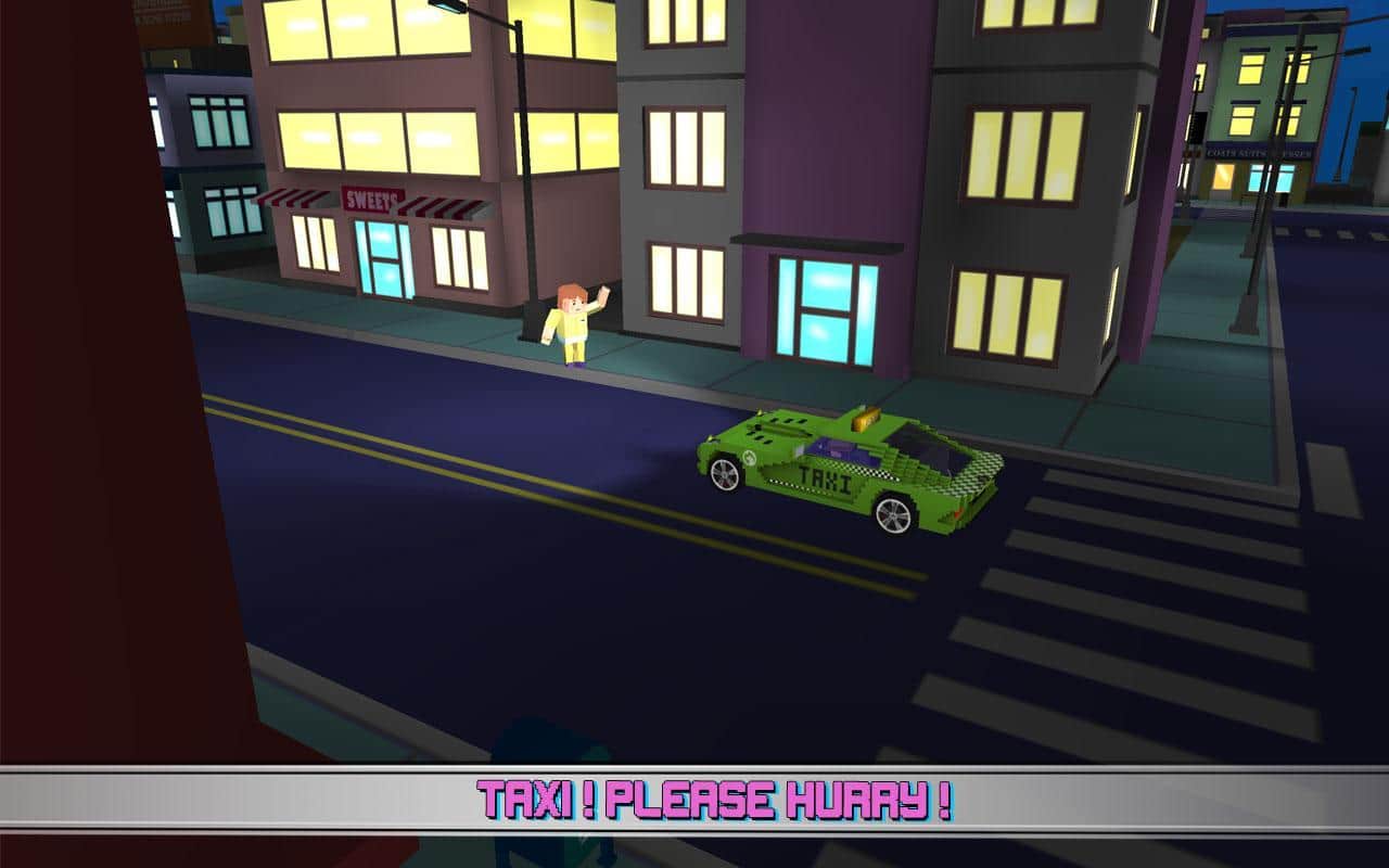 Fast Race City Taxi Legend – simulador de taxi para Android, hecho en gráficos de bloques. En este juego se te pedirá que te pongas al volante de un coche y lleves pasajeros por las calles de grandes ciudades. Siéntete en el papel de un conductor profesional para conducir por las calles de ciudades como Londres, París y Nueva York. Llega al lugar especificado, recoge a los pasajeros y transpórtalos por la ciudad. Sigue las flechas que te indican el camino y síguelas, sin perder tu ruta. Evita accidentes y no los causes mientras conduces. Compra nuevos coches con el dinero ganado.