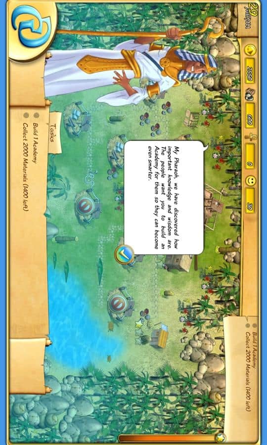 El destino del Faraón - y nuevamente el Antiguo Egipto atrae con su antigüedad en una estrategia económica para Windows Phone. Después de guerras prolongadas, ¡el gran imperio ha caído en decadencia y te espera un gran trabajo para restaurar la grandeza de antaño! Comienza con lo pequeño y lo grande, construye palacios, recauda impuestos, desarrolla el comercio y otras actividades económicas. Por supuesto, te encontraras con obstáculos, ¡pero eso hace que alcanzar tu objetivo sea aún más interesante! 9 capítulos con recompensas en cada uno, 44 niveles con diferentes desarrollos de eventos. ¡Un juego cautivador y buena gráfica - un verdadero dúo poderoso!