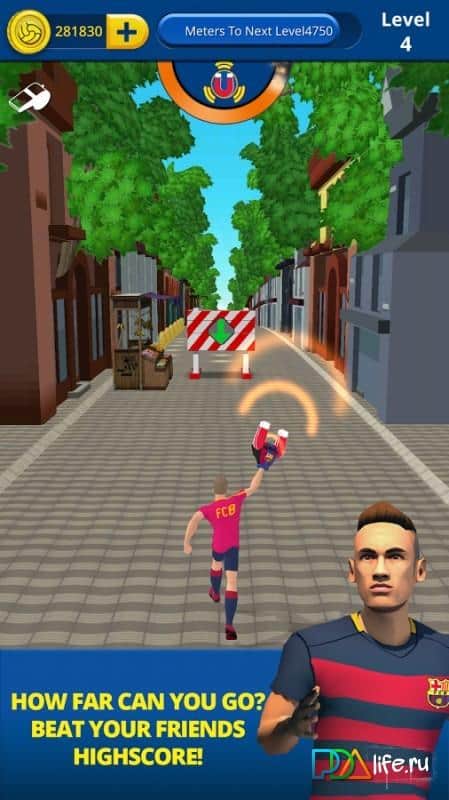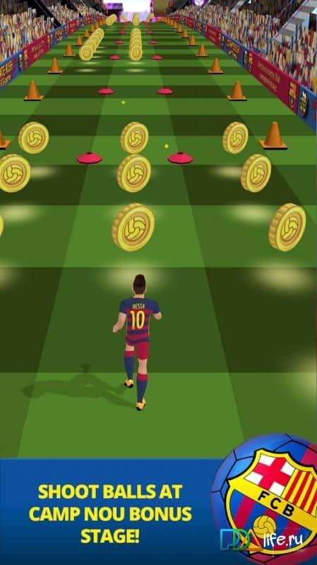 Juego FC Barcelona Ultimate Rush para Android donde controlarás la carrera del famoso futbolista de Barcelona. En este juego, debes guiar a tu héroe a través de varios niveles evitando todos los obstáculos y recogiendo monedas de oro y bonificaciones. En el juego, tu tarea será moverte por el campo de fútbol, pequeñas calles de la ciudad, túneles del metro y otros lugares inusuales e intentar encontrar todos los monumentos robados de Barcelona. Los fragmentos de monumentos están en tu camino, recógelos y avanza llegando primero a la línea de meta. Salta a través de muchos obstáculos y utiliza bonificaciones y potenciadores para pasar el nivel rápidamente.