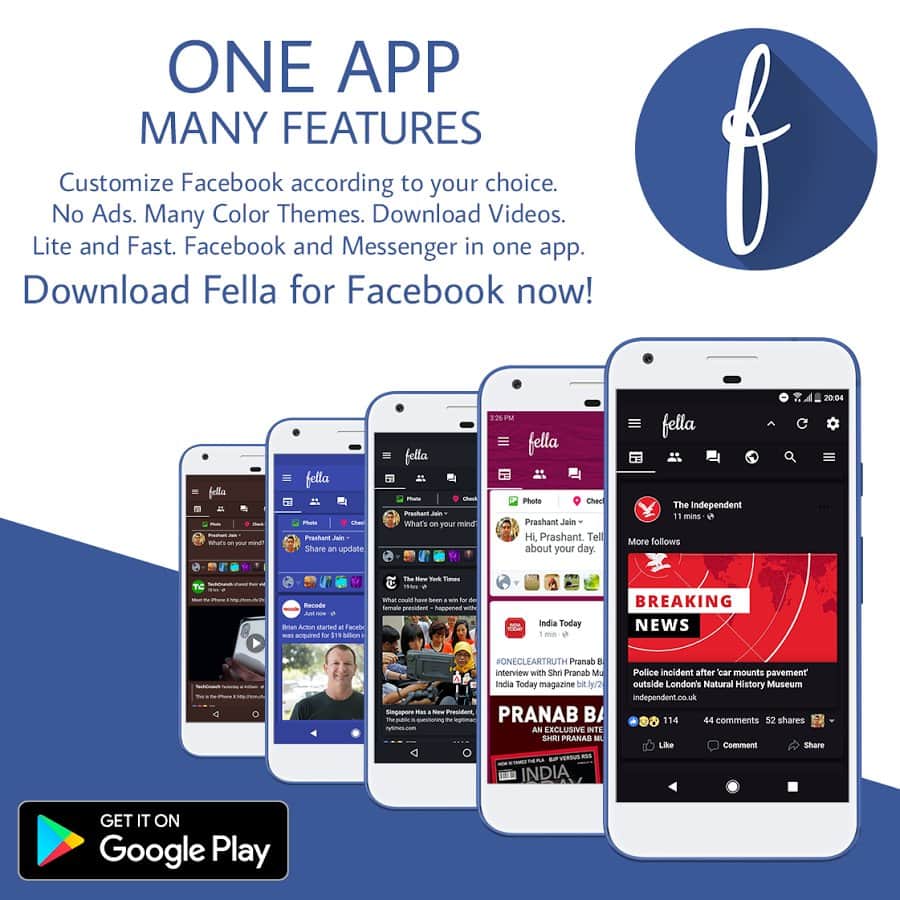 Fella - siente posibilidades ilimitadas para la red social Facebook. La configuración extensa y la conexión rápida no te dejarán aburrido mientras ves fotos, videos o chateas con amigos en Facebook. Características: la falta de publicidad y suscripciones pagadas Gran selección de colores y temas bajo costo de energía la capacidad de ver y descargar videos rápidamente la aplicación funciona en más de 35 idiomas juegos El ahorrador de datos Función para ahorrar espacio y aumentar la velocidad de apertura de páginas lentamente