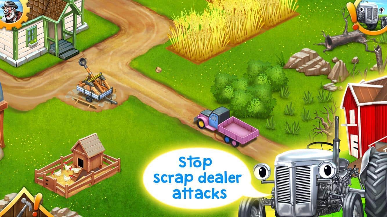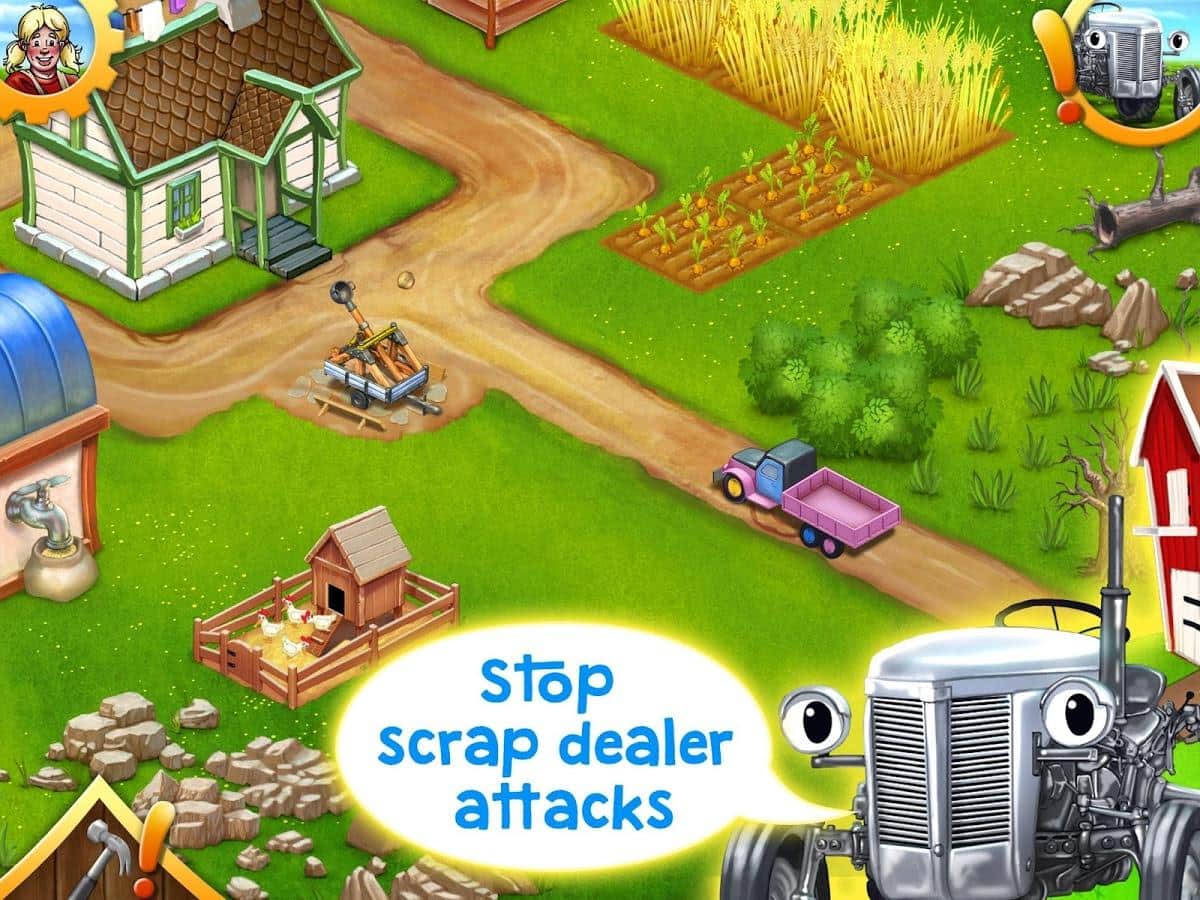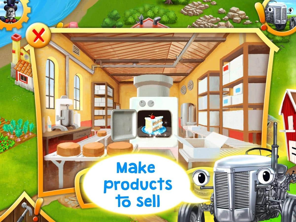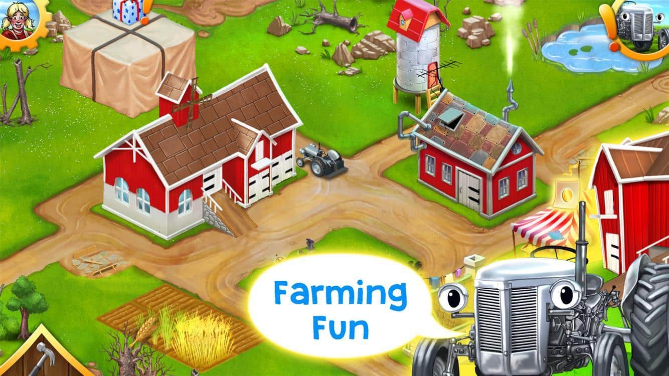 Fergie Salva el Día es una granja casual con gráficos excelentes y personajes divertidos. La originalidad del juego radica en que, además de la mecánica habitual del juego, incluye elementos de narración y aventura. El protagonista que salva el día, Fergie, se convierte en un pequeño tractor llamado Fergie, que junto con sus amigos vive en una granja y, por supuesto, participa en su desarrollo. El tractor será el eje de la historia principal. Convencionalmente, toda la jugabilidad se puede dividir en tres partes: aventura y narrativa, elementos habituales del género como la construcción, expansión, embellecimiento, desarrollo y un momento bastante inusual, que permite construir una planta especializada para la producción de productos terminados. Esta combinación ofrece la jugabilidad familiar de una manera completamente nueva.
